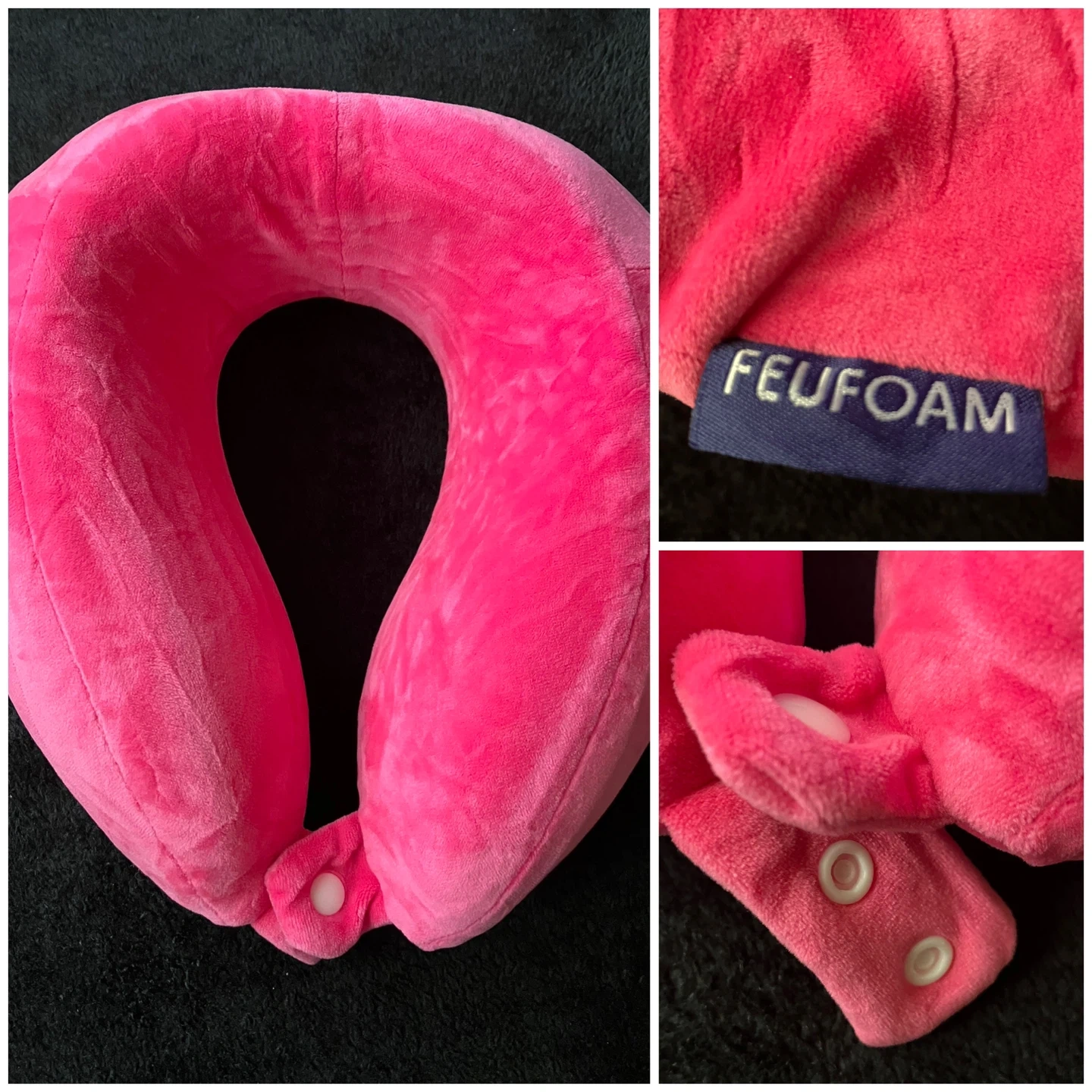 Hi, I am selling a comfy pink travel neck pillow from FEUFOAM! It's in great condition and perfect for long trips or just relaxing at home. The soft material makes it super comfortable to use. Pick up only. (In Scarborough.) Thank you for your interest!