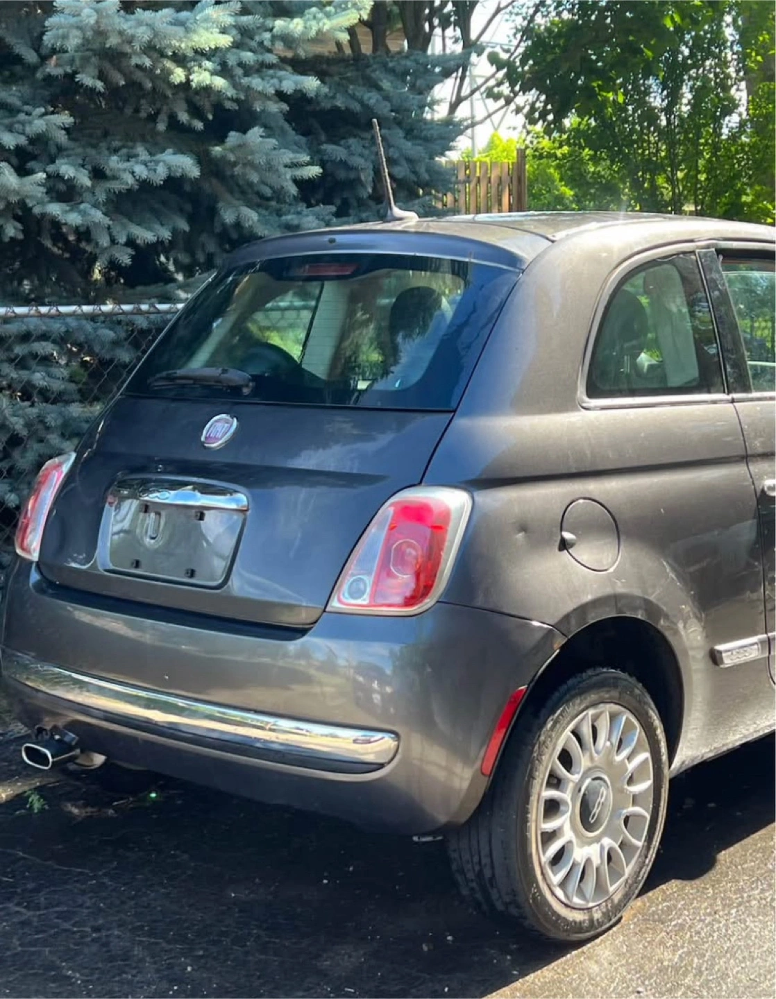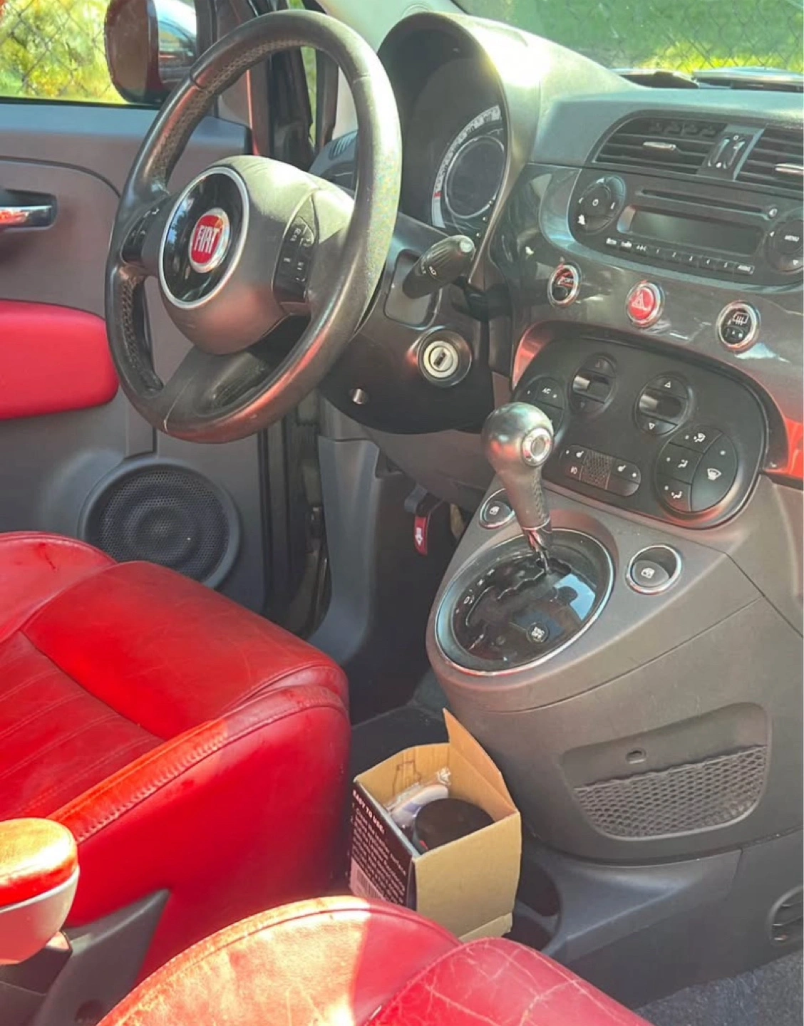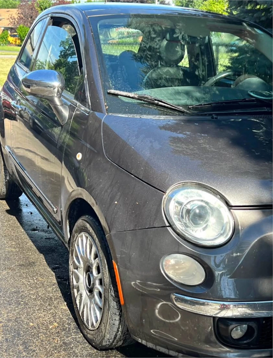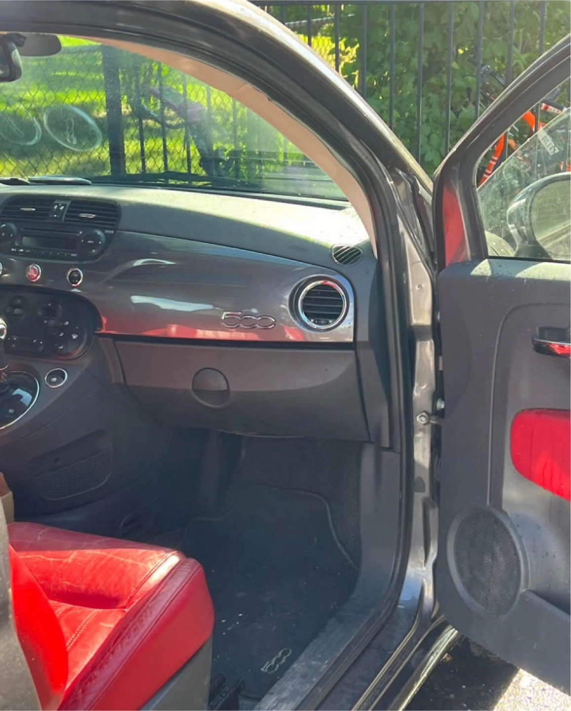 Selling a Fiat 500 hatchback. It's a stylish grey on the outside with a vibrant red interior. Perfect for zipping around town! Only issue is steering is hard