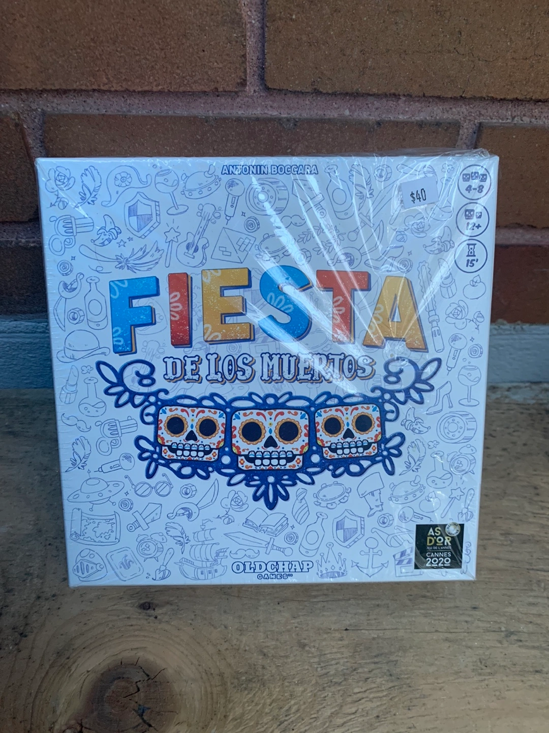 Selling a brand new, still-in-shrink-wrap copy of Fiesta de los Muertos board game! This game is designed by Antonin Boccara and is made by Old Chap Games. The box says it's for 4-8 players and ages 12+. Originally priced at $40, this award-winning game is a fun addition to any game night