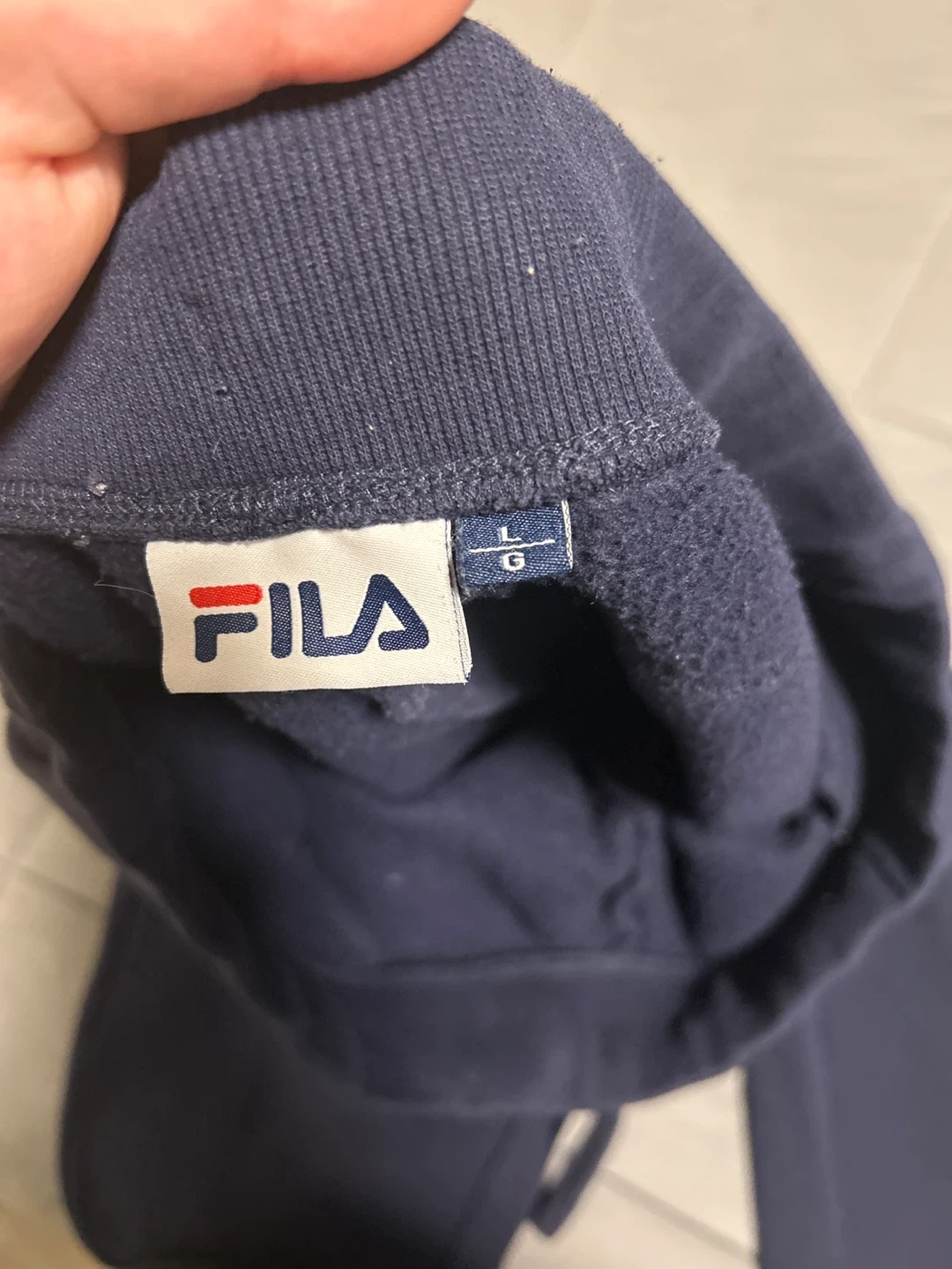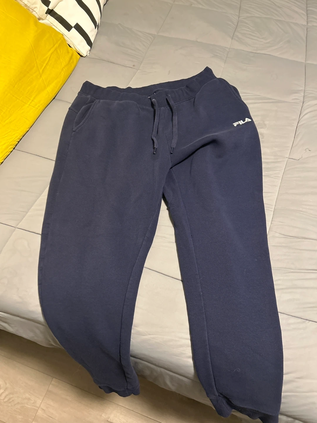Selling a pair of Fila sweatpants in blue. They're a size large and in great condition. Perfect for lounging around or hitting the gym!