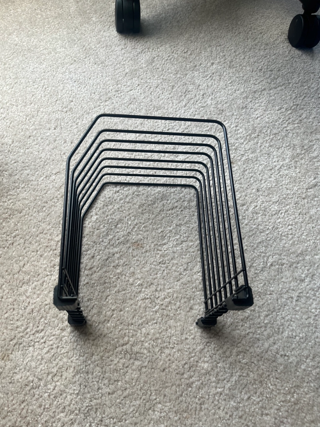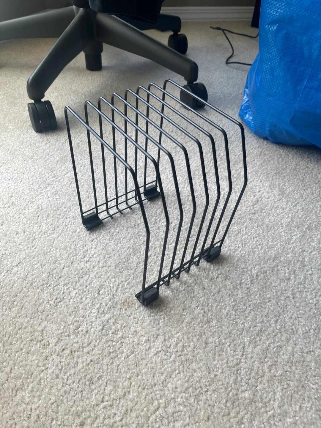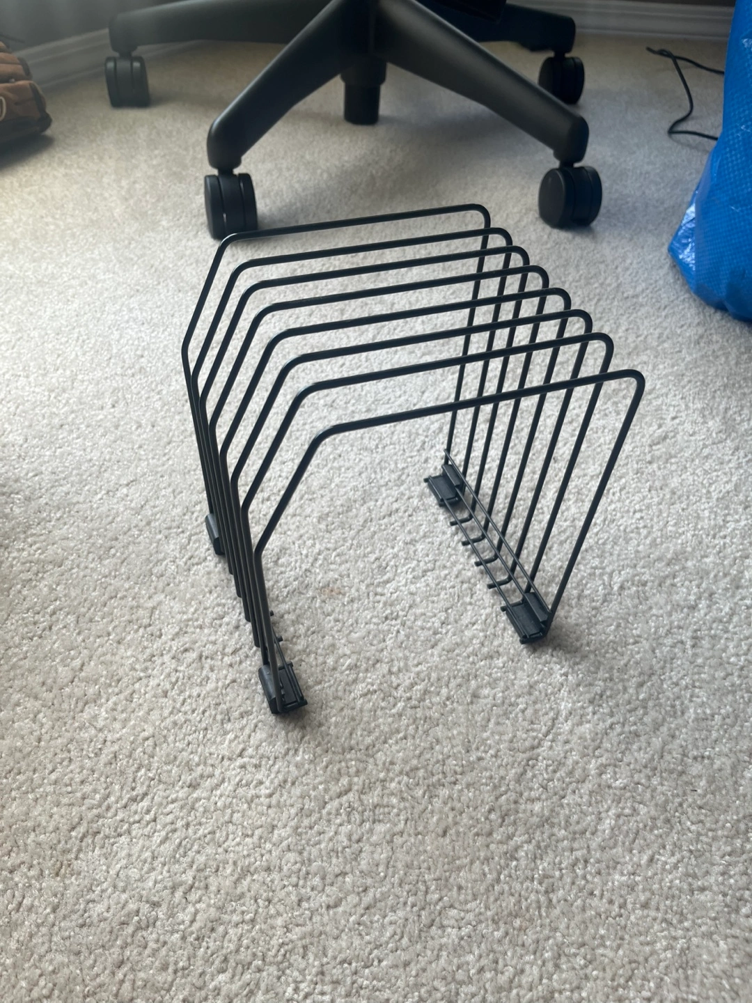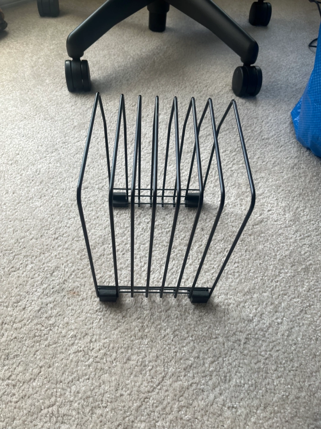 A handy black metal file/folder organizer! It's perfect for keeping your documents and papers tidy. It's in great shape, was never used and is ready to help you declutter your workspace