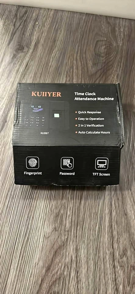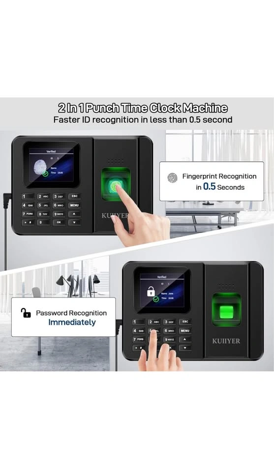 Brand new employee time clock system – perfect for small businesses, offices, shops, salons or warehouses. ✅ Fingerprint + Password login ✅ 2-in-1 Verification for security ✅ Auto calculate work hours ✅ Quick response, easy to use ✅ Color TFT screen Simple plug & play setup – no extra software required. 📦 Condition: New in box