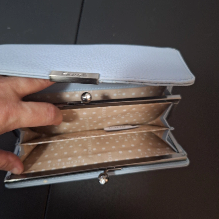 Selling a cute Fiorelli crossbody bag in a lovely shade of blue! It has a zippered pocket on the front and a fun polka dot lining. Perfect for carrying your essentials while keeping your hands free. $120 for purse and wallet.