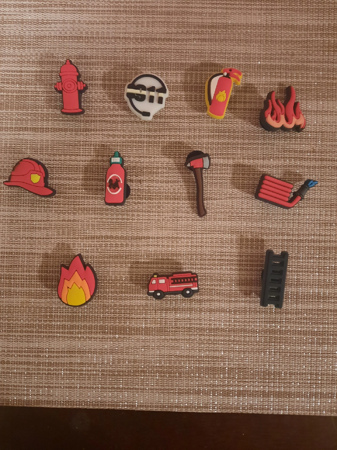 Add some fun to your Crocs with this 11-piece set of firefighter-themed charms! Includes a fire hydrant, helmet, fire truck, and more, perfect for any firefighter enthusiast