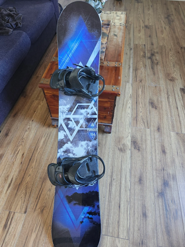 Selling a Firefly Furious snowboard, size 154cm. It comes with Burton bindings. Also included is a StoreYourBoard wall mount for easy storage!