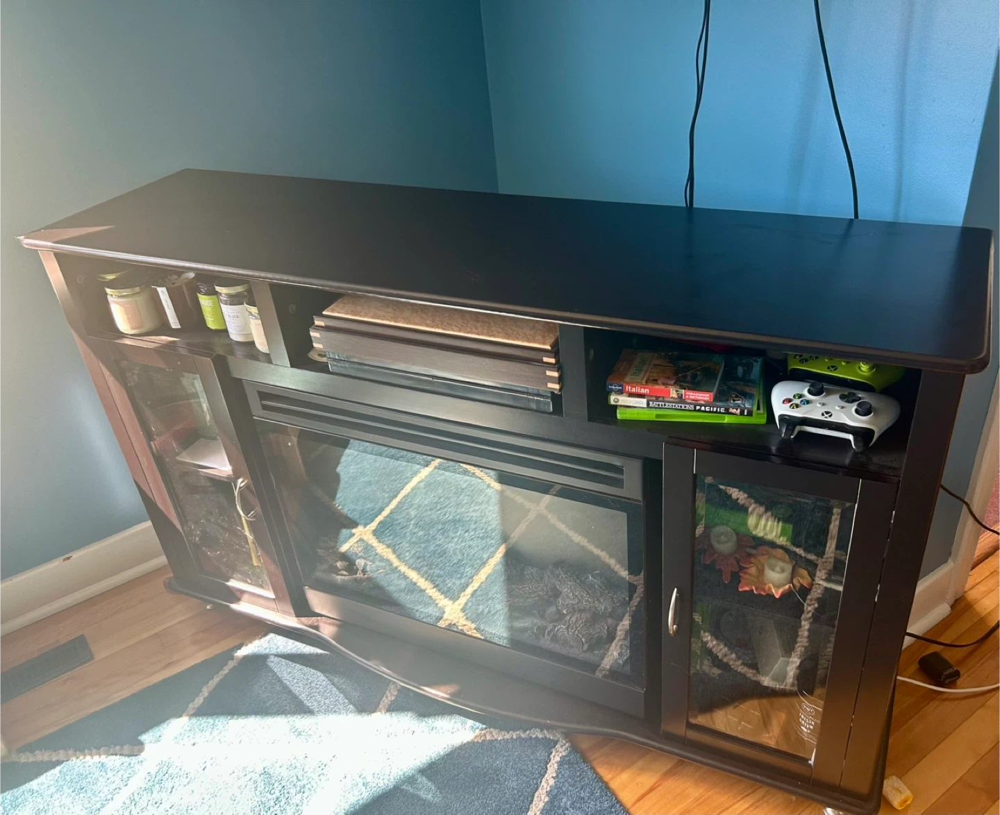 Selling a fireplace TV stand. It's in great shape and ready for a new home. Perfect for cozying up during those cold Canadian winters. Unfortunately there is no remote, the fireplace does work but the control panel needs fixing.