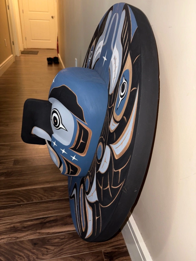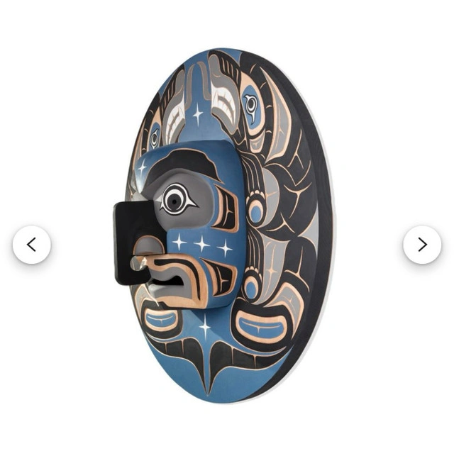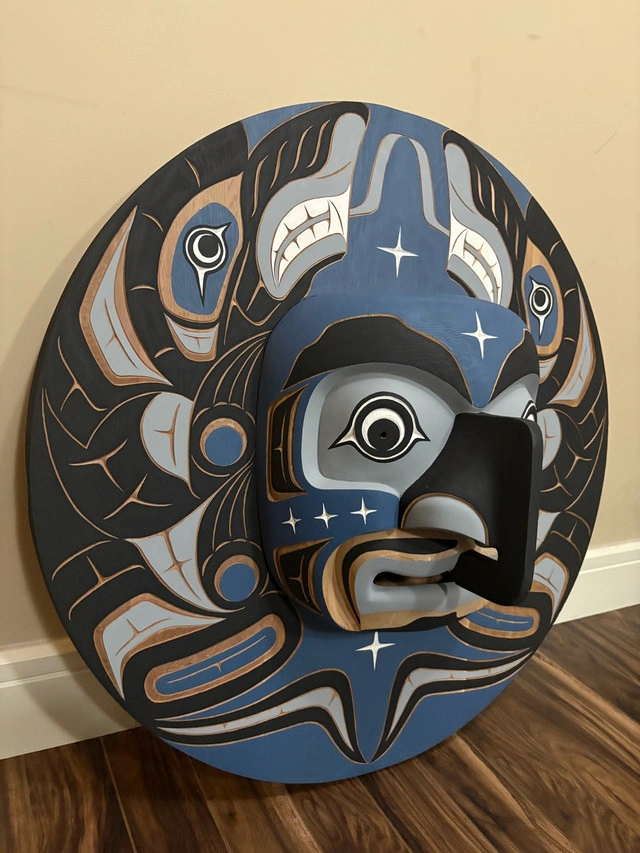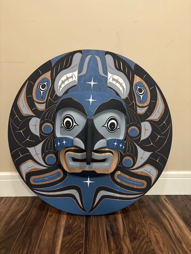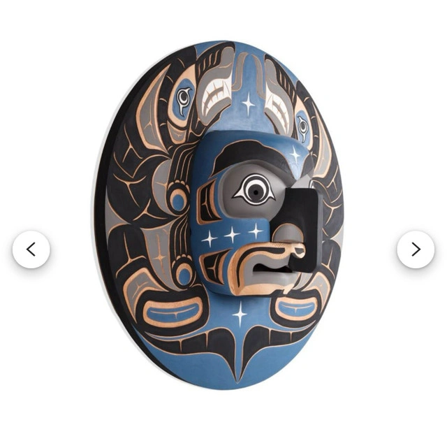 Embrace the rich cultural heritage of the Canadian Aboriginal peoples with this exquisite First Nations Moon Mask. Carved from red cedar, this piece reflects the artistry and spiritual significance of the Northwest Coast, specifically tied to the Coast Salish tribal affiliation. Each curve and line in the design tells a story that transcends time, offering a glimpse into the ceremonial and artistic traditions of the area. This mask is a testament to skilled craftsmanship, handmade with care, it's a stand-alone piece that brings a touch of traditional elegance to any collection or personal space. Though its ownership history remains a mystery, the mask's authenticity and cultural importance are undeniable, serving as a beautiful bridge between the past and present.