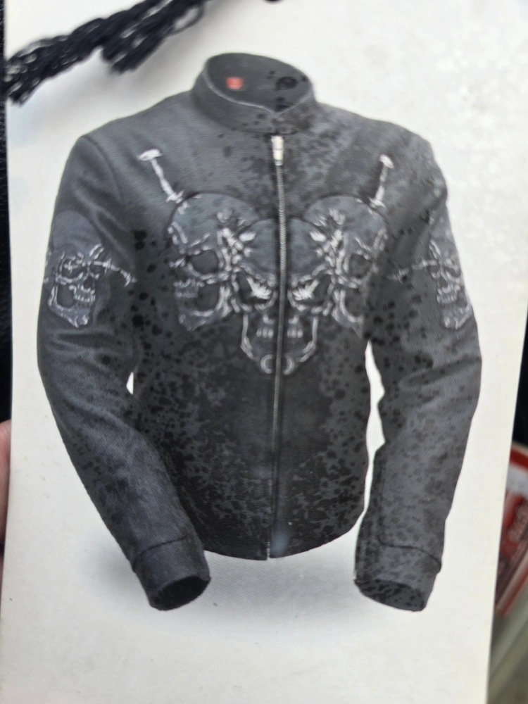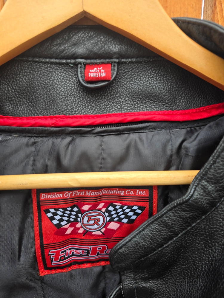 Selling a First Racing leather jacket with a cool skull design! The tag shows it was originally priced at $599.99, but on sale for $499.99. It's a really stylish piece!