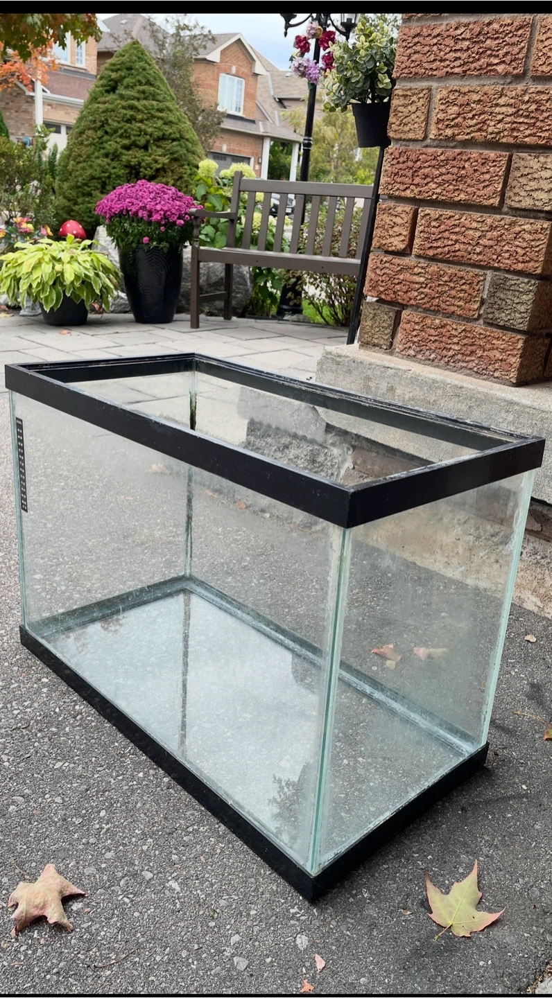 Selling a used fish tank. Approximate dimensions are 24 inches long, 16 inches tall, and 12 inches wide.