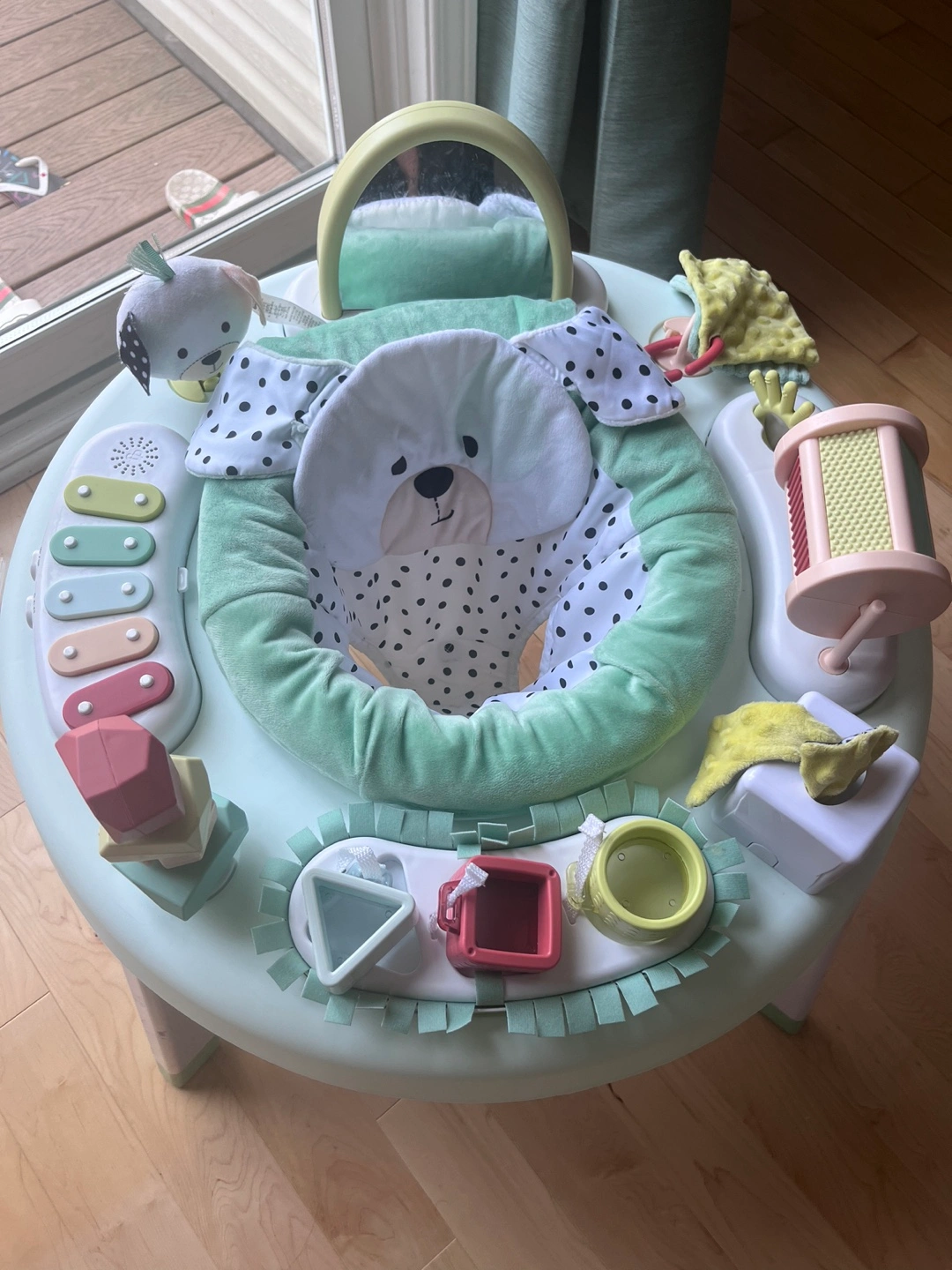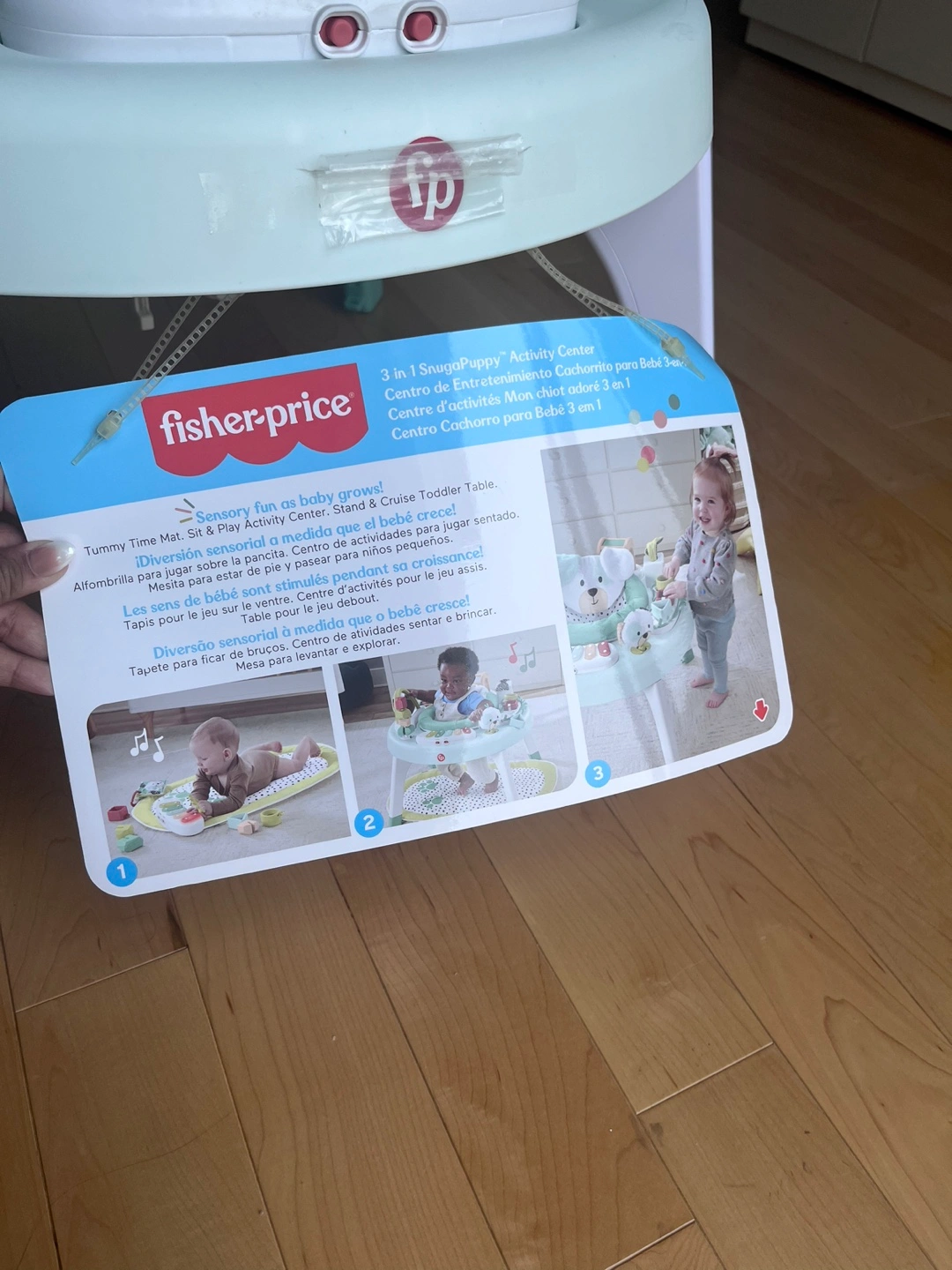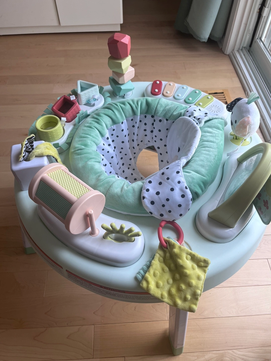 This Fisher-Price 3-in-1 Spin & Sort Activity Center grows with your baby! It transforms from a tummy time mat to a sit-at activity center, and finally to a stand and cruise activity table. It's packed with sensory fun to help your little one develop and explore