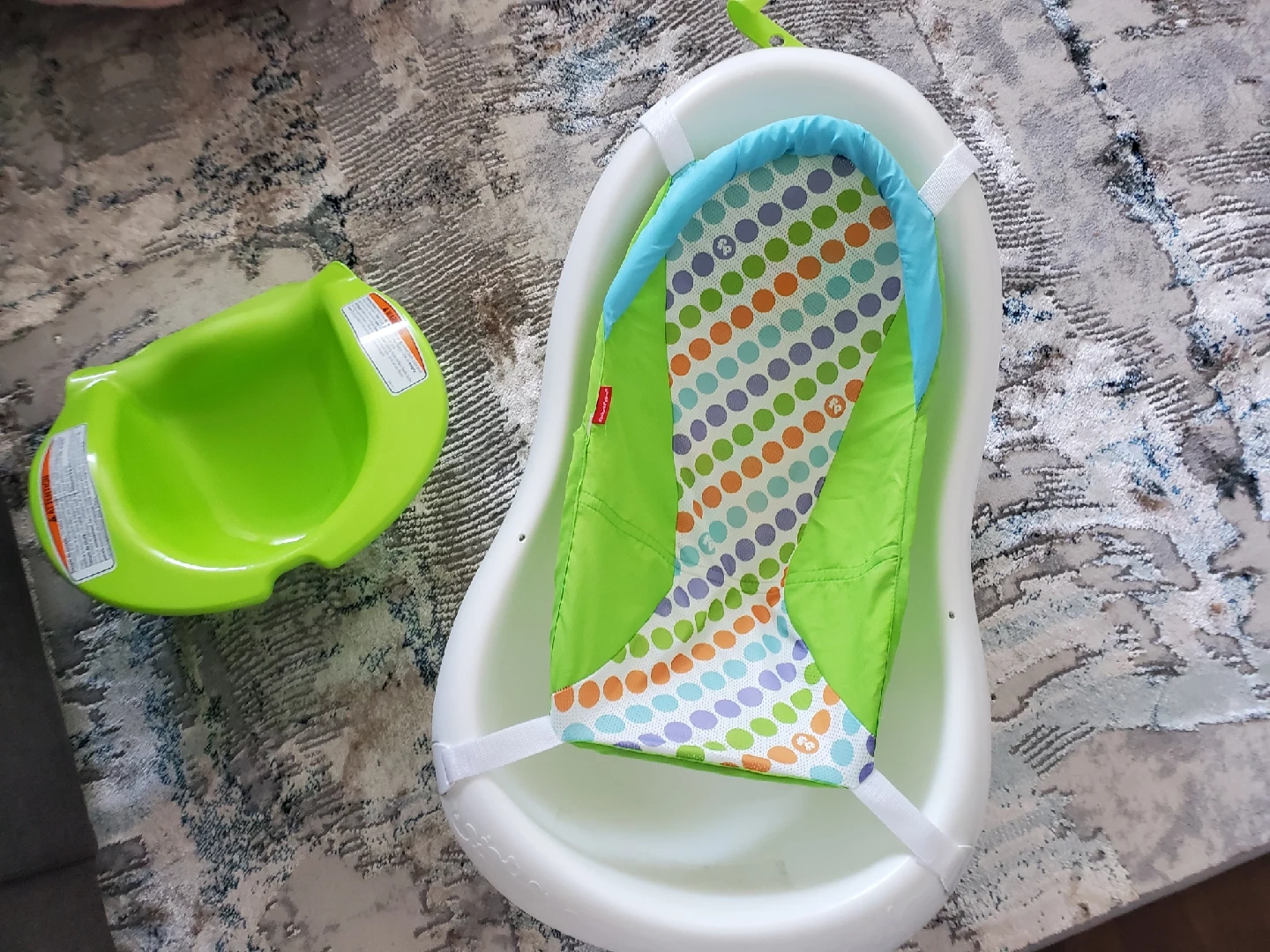 Selling a Fisher-Price 4-in-1 Sling 'n Seat Tub! This versatile tub grows with your baby, from newborn to toddler. It includes a soft sling for newborns, a supportive seat for infants, and a spacious tub for older babies and toddlers. The tub also features a plug for easy draining and a hook for convenient storage. Perfect for making bath time safe and fun!
