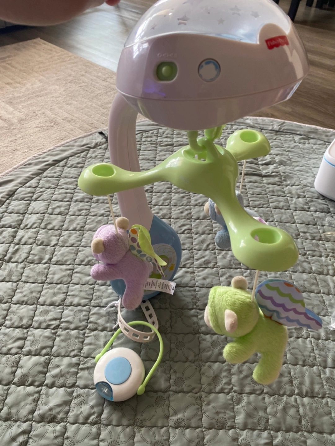 Selling a Fisher-Price baby mobile in great condition! It features soft, plush animals and projects stars to help soothe your little one to sleep. It also plays gentle music and sounds.