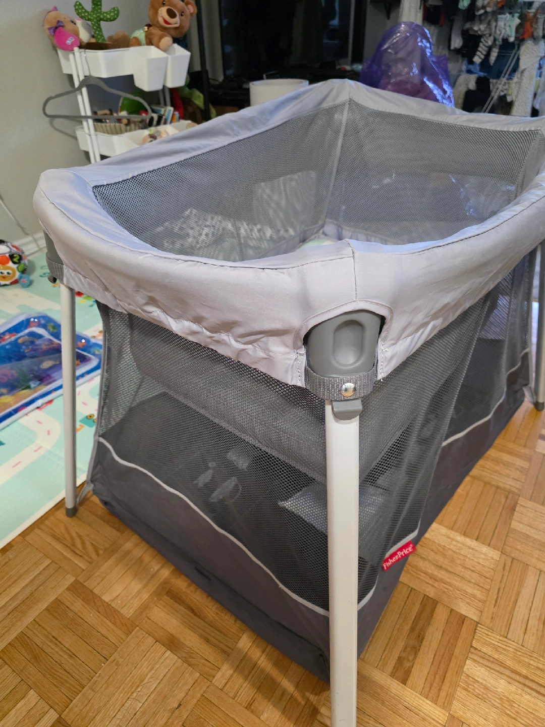 Selling Fisher Price Bedside Bassinet/Playard! It's in great condition and perfect for naps or playtime, whether you're at home or travelling. It's lightweight and portable, making it easy to bring along on your adventures