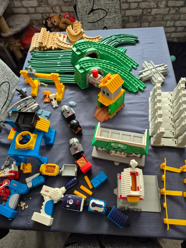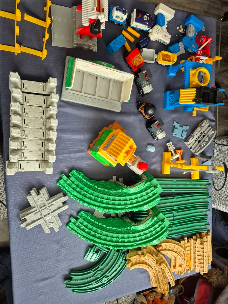 For sale: Circa 2003 Fisher Price GeoTrax Set. Excellent Used working Condition and we have a video to show it works. This is selling as a lot. Multiple sets included. BATTERIES NOT INCLUDED. It takes AAA x 12 (3 per unit)