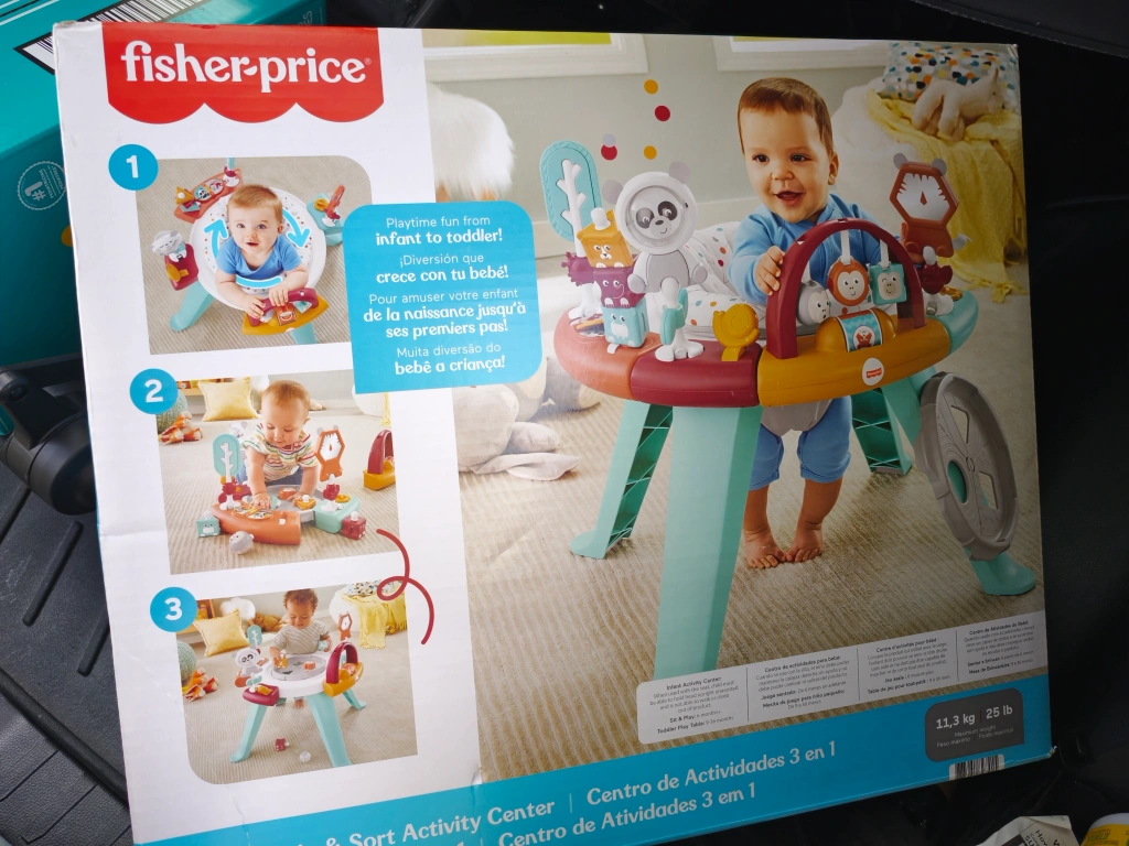 An activity center with fun toys and bright colours. Designed for infant to toddler fun. Playing with this item will keep your baby happy.
