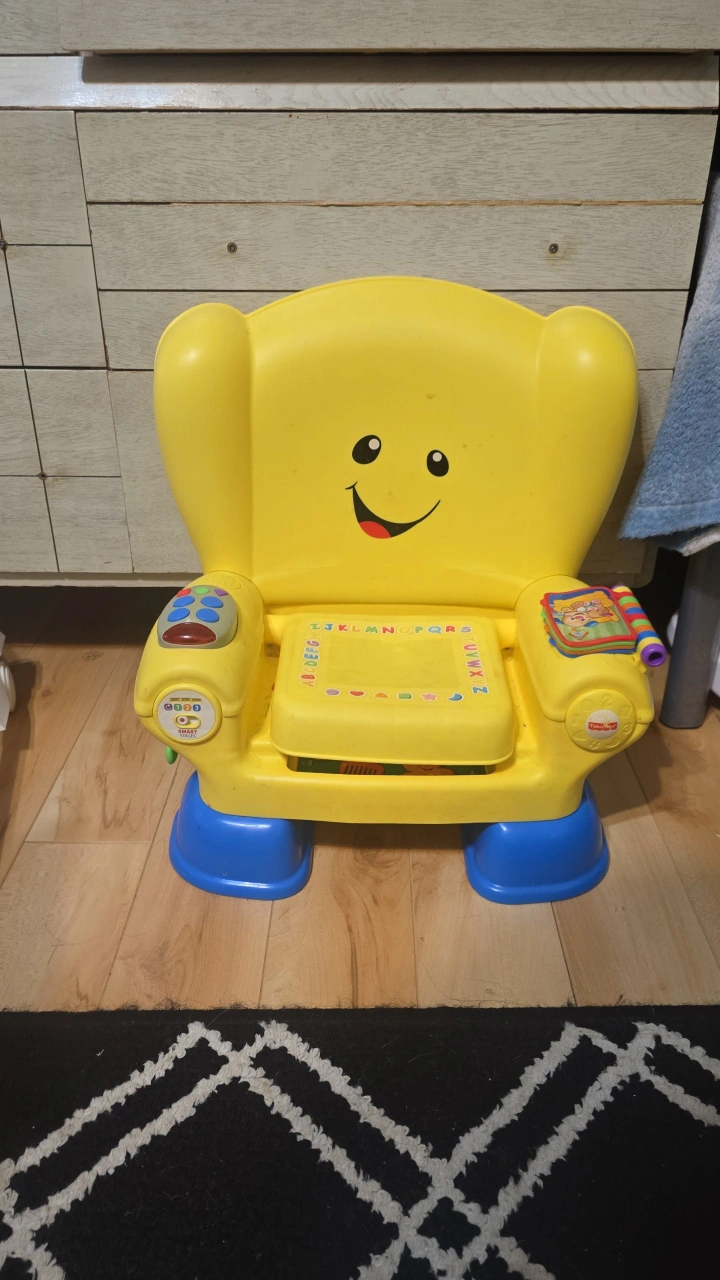 I'm selling a Fisher-Price Laugh & Learn chair. It's in great condition and ready for a new home! This interactive chair helps your little one learn letters, numbers, and more through fun songs and phrases. Perfect for toddlers! -$30 ride on airplane with music and lights - $25