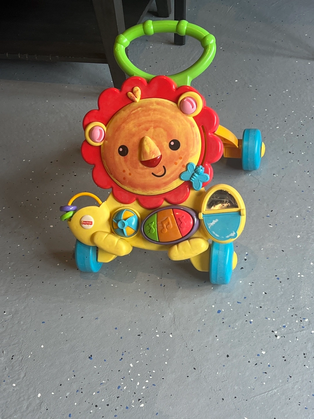 Selling a Fisher-Price Lion Walker! It's in great condition and ready for a new home. This interactive walker helps your little one learn to walk while providing fun activities and sounds to keep them entertained