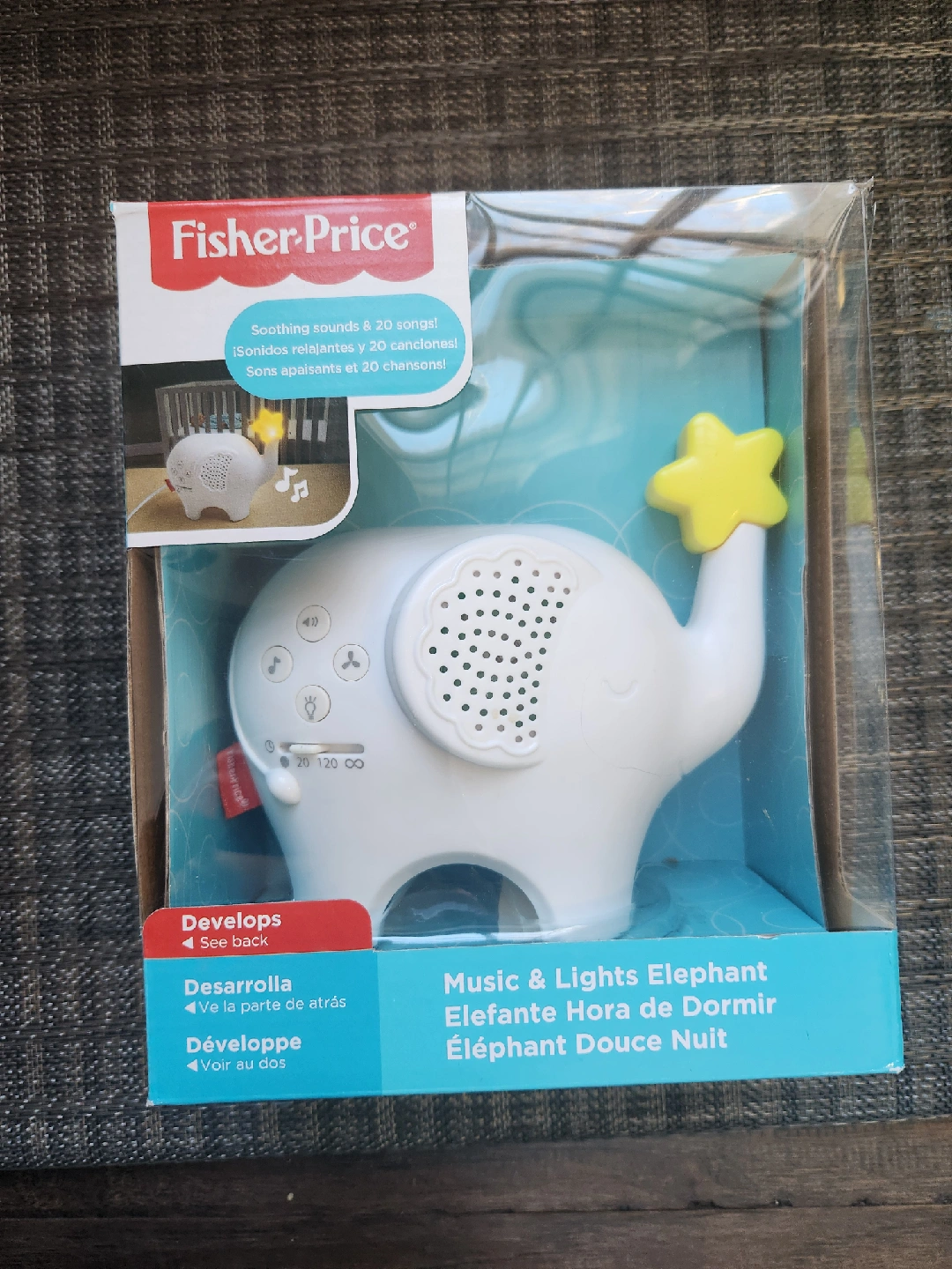 Selling a Fisher-Price Music & Lights Elephant soother! This adorable elephant plays soothing sounds and 20 songs to help your little one drift off to sleep. It's in excellent condition and comes with the original box. A perfect addition to any nursery!