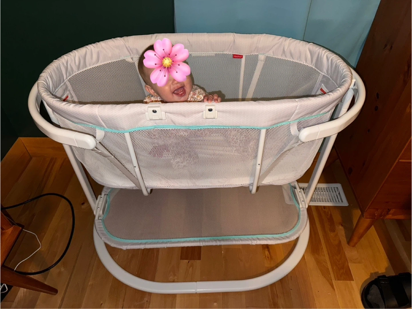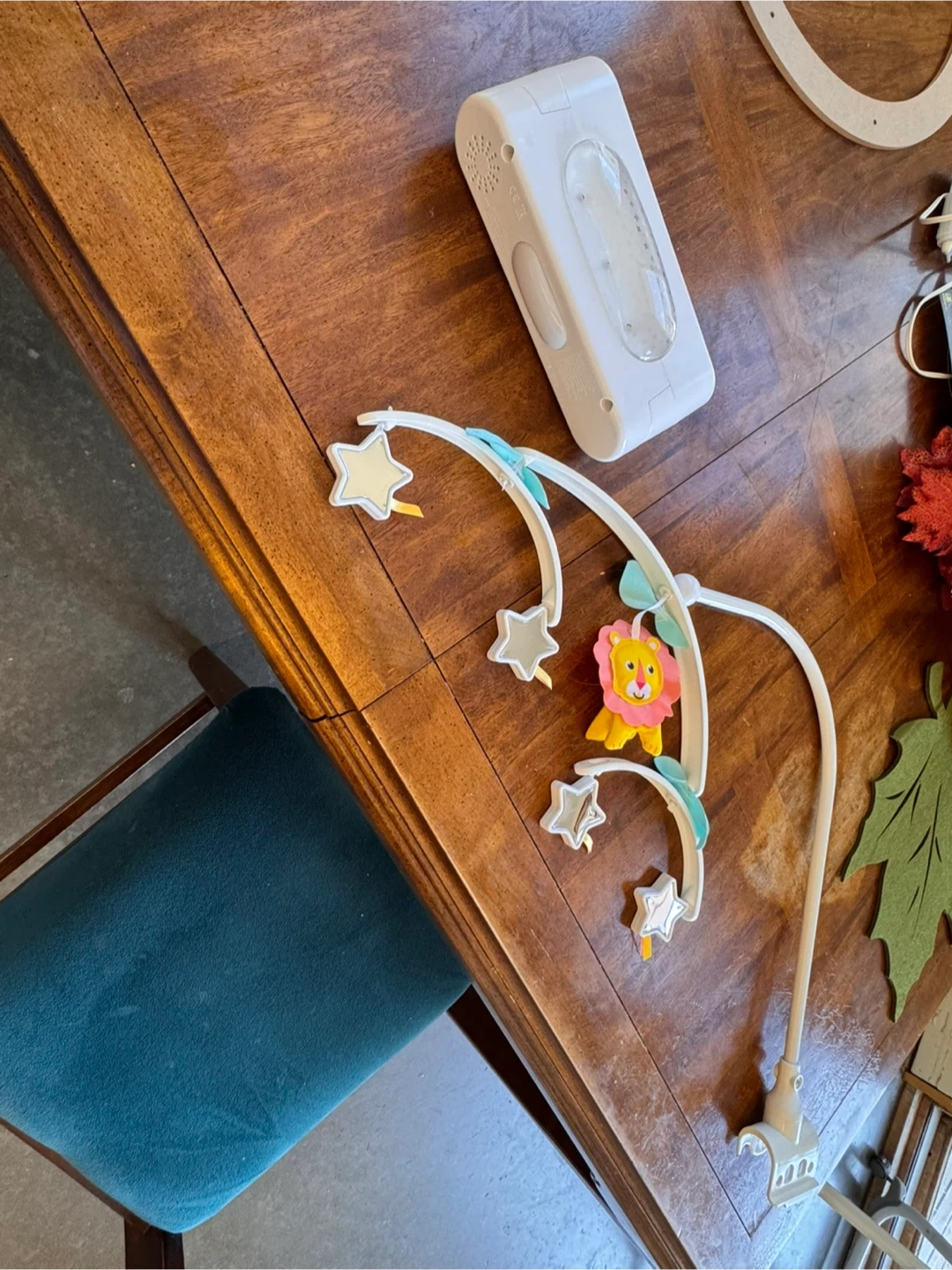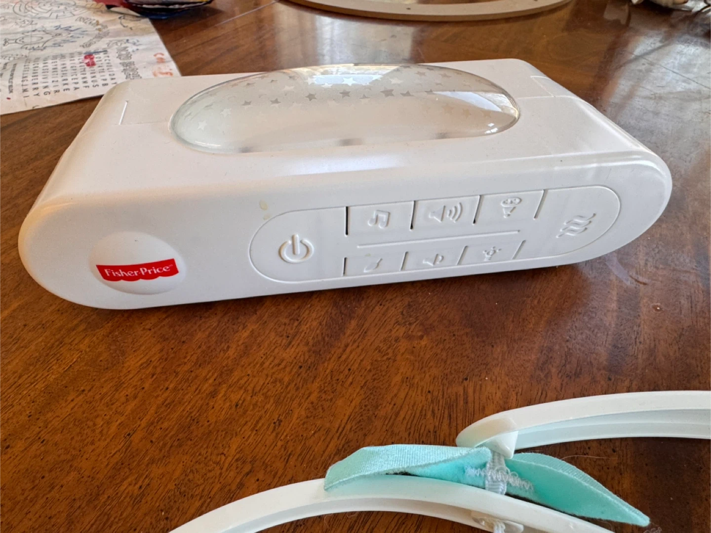 Selling a Fisher-Price Soothing Motions Bassinet and a baby mobile. The bassinet is perfect for keeping your little one close and comfortable! The mobile features cute stars and a lion, providing visual stimulation for your baby. Great condition- option to play music, lights, or vibration. Comes with two bamboo fitted sheets.
