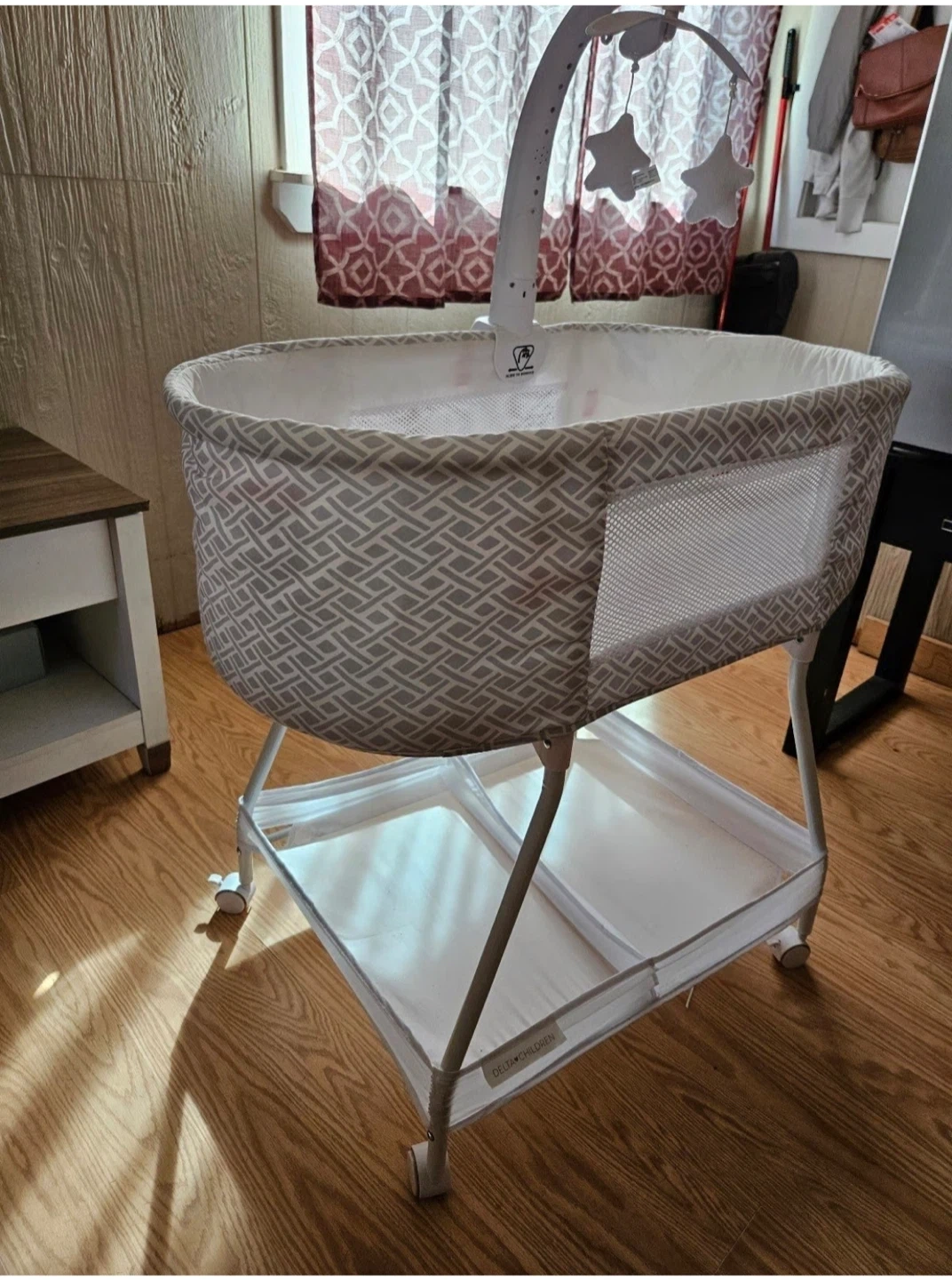 Selling a Fisher-Price Twinkling Lights SpaceSaver Cradle 'n Swing! It features: - 2 swinging motions to soothe baby - 2 modes of balancing - 40% smaller space saving design