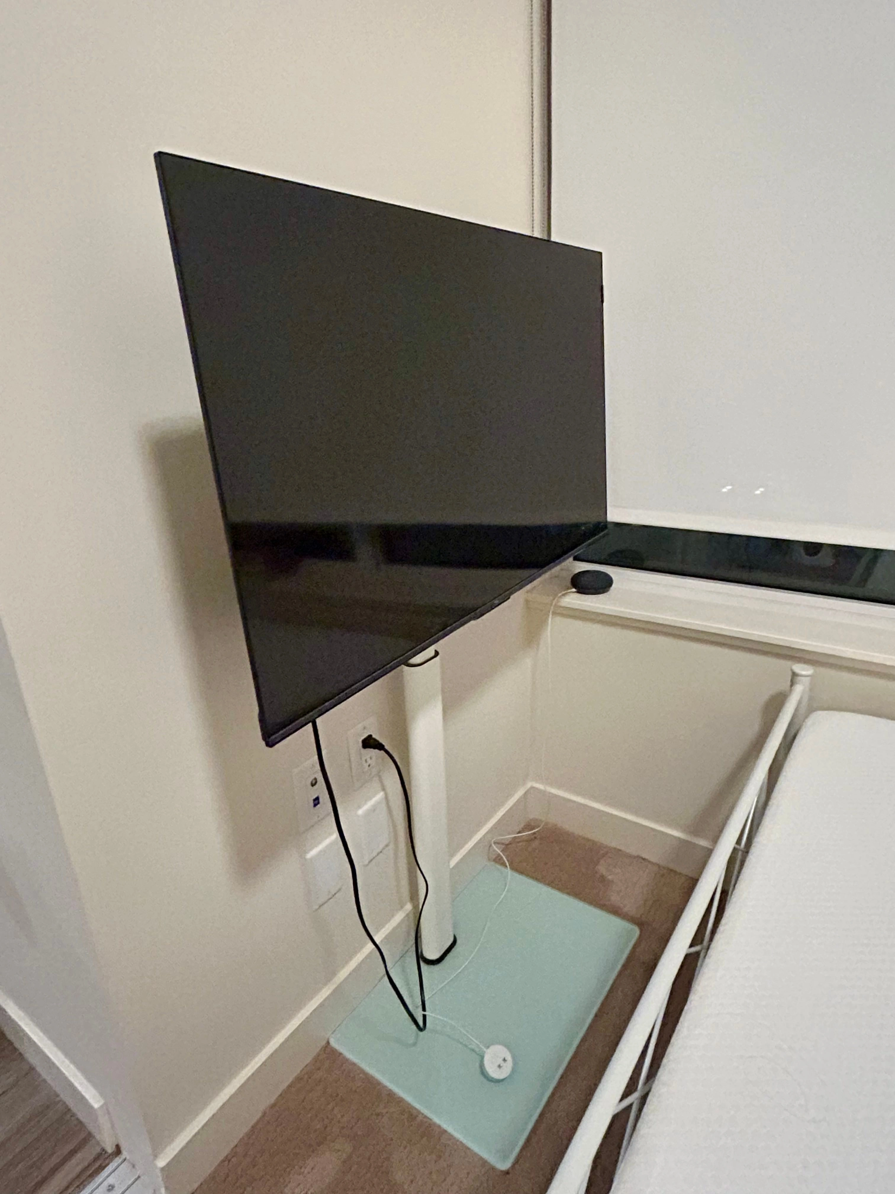 Selling my FITUEYES white TV stand, fits 32″ to 60″ TVs. Used for about a year, in very good condition — sturdy and clean with no cracks or damage. Features: • Space-saving corner design • Swivel bracket and adjustable height • Tempered glass base for stability • Fits most TV brands (VESA up to 600×400 mm, holds up to ~66 lbs) • Sleek white finish — modern look that suits any room Pick up anytime between Oct 28–30, or Oct 31 before 10 AM, at Metrotown