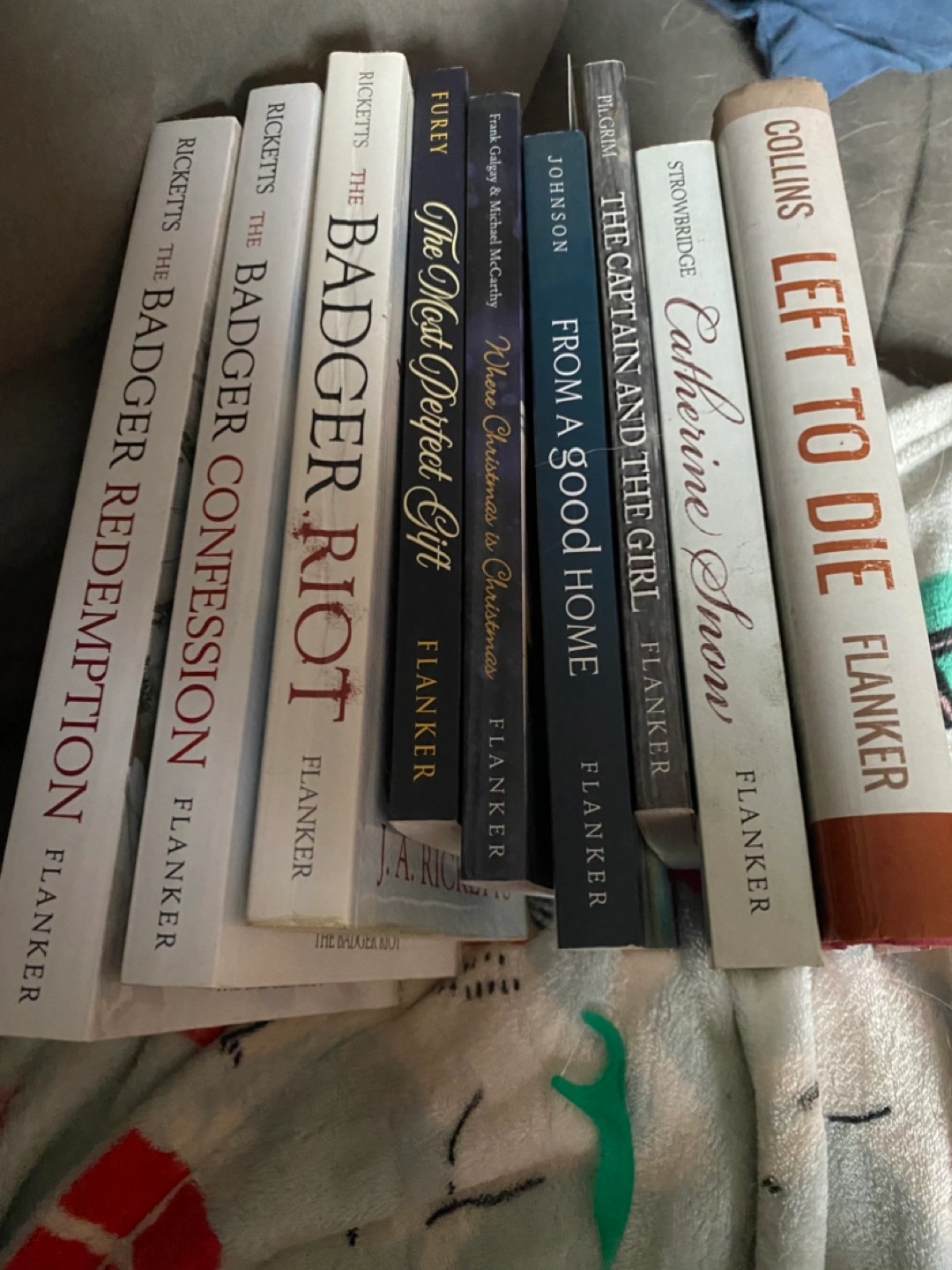 10Selling a collection of Flanker books! Titles include: - Collins Left to Die - Strowbridge Catherine Snow - Pilgrim The Captain and the Girl - Johnson From a Good Home - Frank Galgay & Michael McCarthy Where Christmas is Christmas - Furey The Most Perfect Gift - Ricketts The Badger Riot - Ricketts The Badger Confession - Ricketts The Badger Redemption 10.00 each