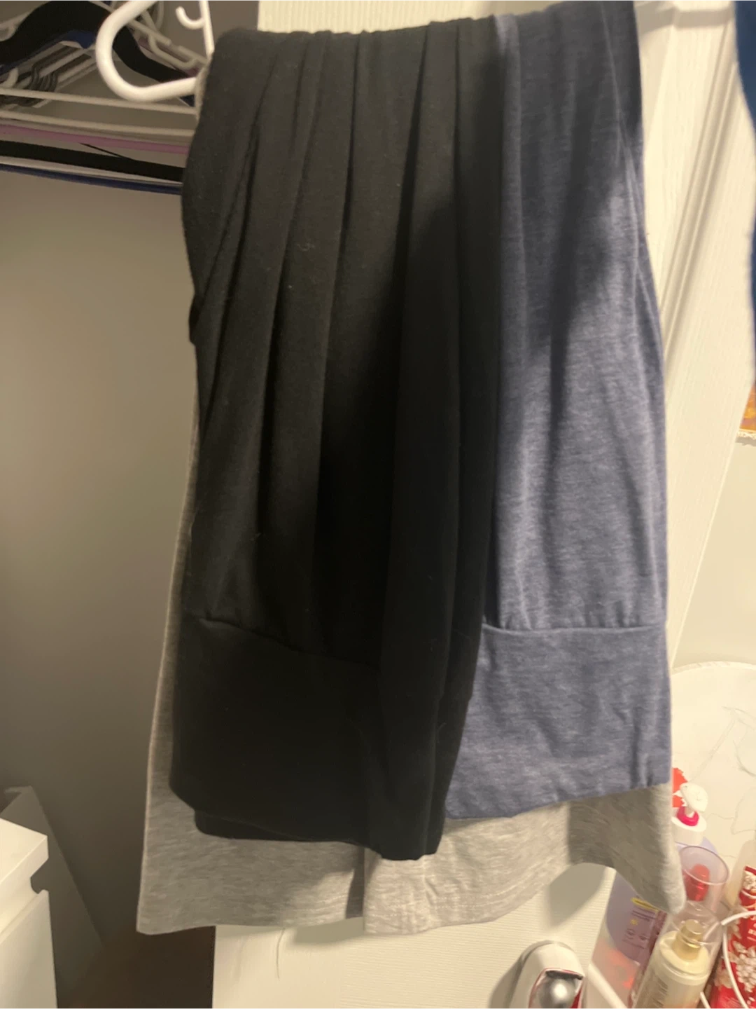Selling a few flared leggings in good condition. They come in various colours including black, grey, and blue. Great for casual wear or dressing up!