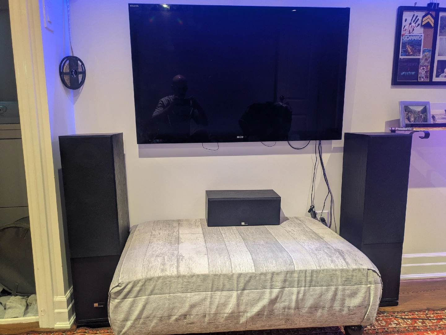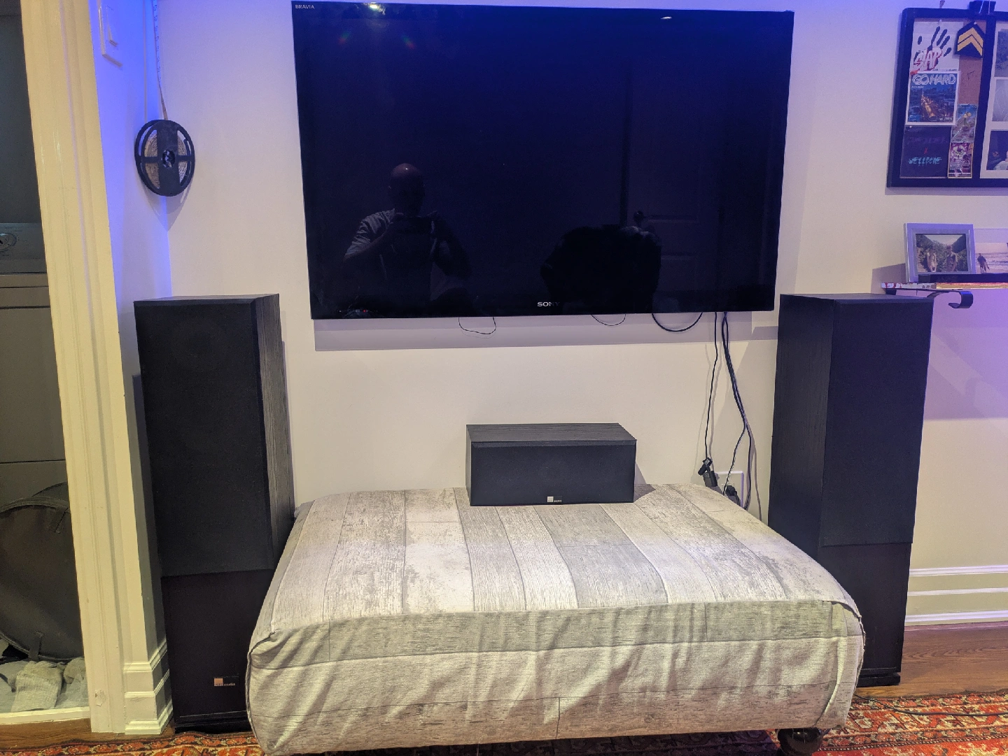 Selling a flatscreen tv + 3 Piece sound system combo System(Left+Right Tower Speakers & Center Channel)
