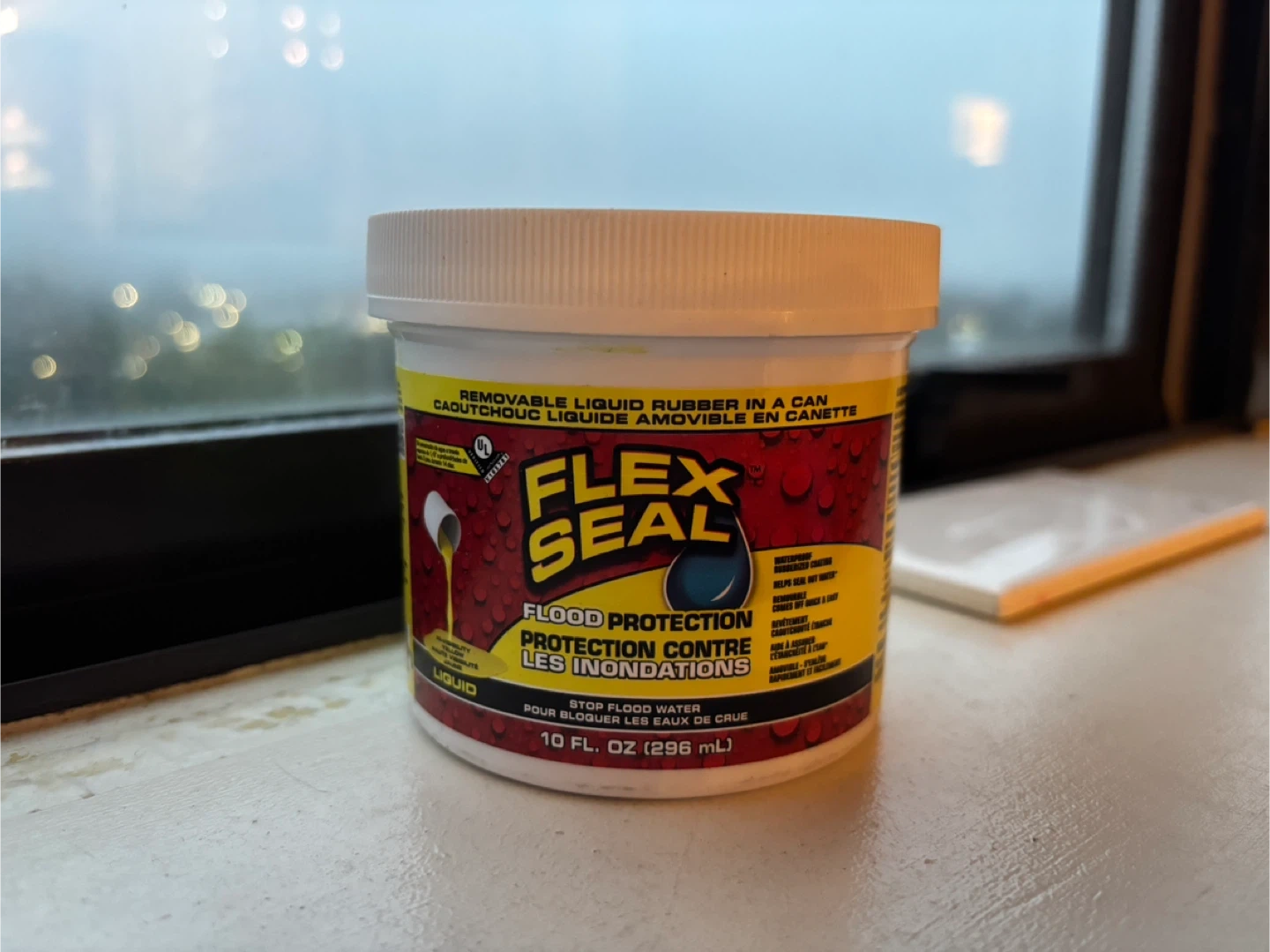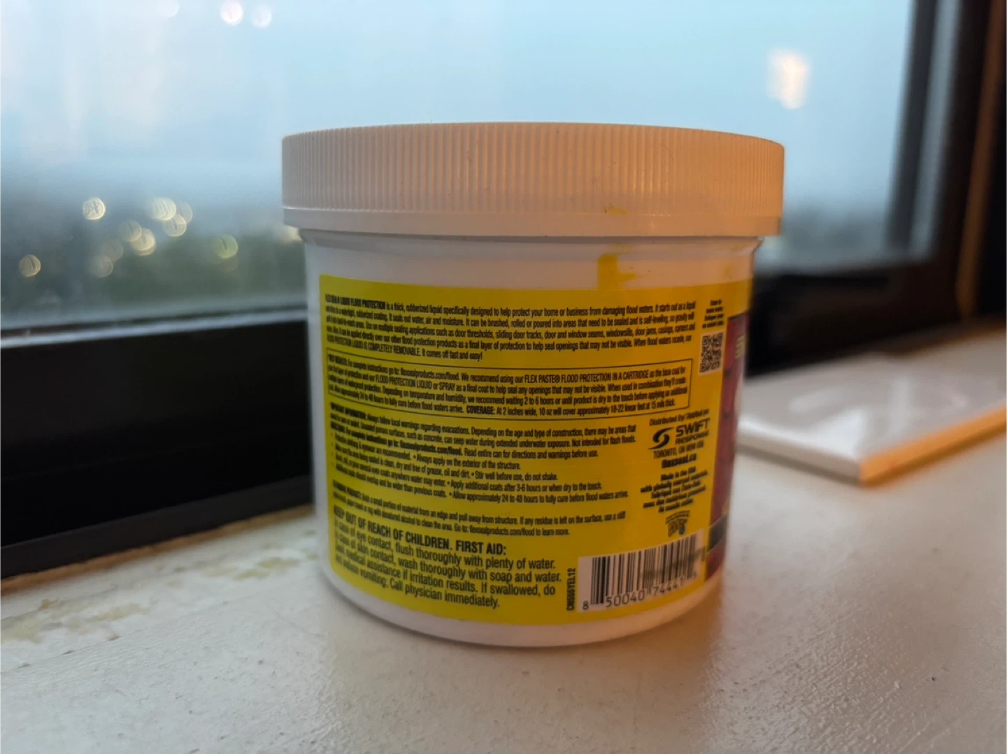 Selling ( *10) a container of Flex Seal Flood Protection liquid rubber. It's a removable liquid rubber in a can designed to protect your home or business from damaging flood waters. This 10 fl oz container is ready to use and will protect against flood water, air, and moisture on door thresholds, sliding door tracks, door and window seams, and more Price is for each .