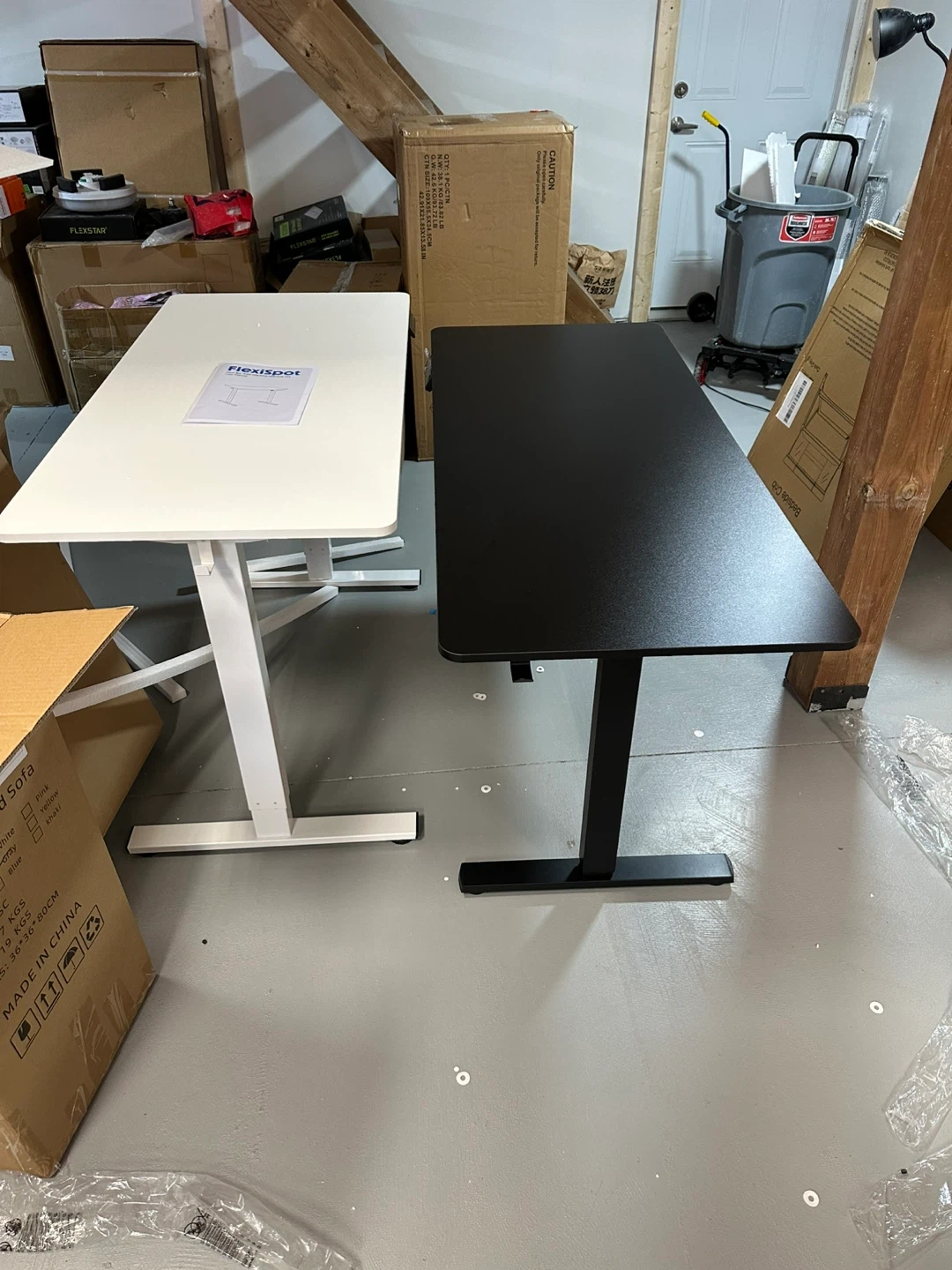 Selling a Flexispot standing desk in white! The tabletop measures approximately 48 inches in length. Great for a home office or workspace!
