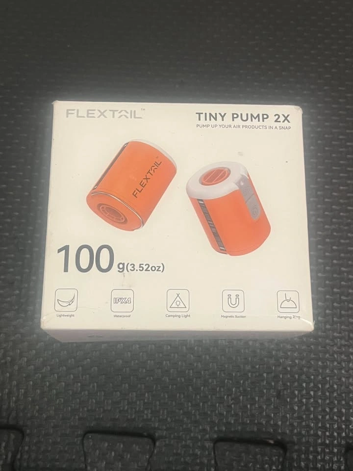 Ultra-lightweight portable air pump, 100g (3.52oz), IPX4 waterproof, magnetic suction, built-in camping light. Condition: New. Brand: FLEXTAIL.