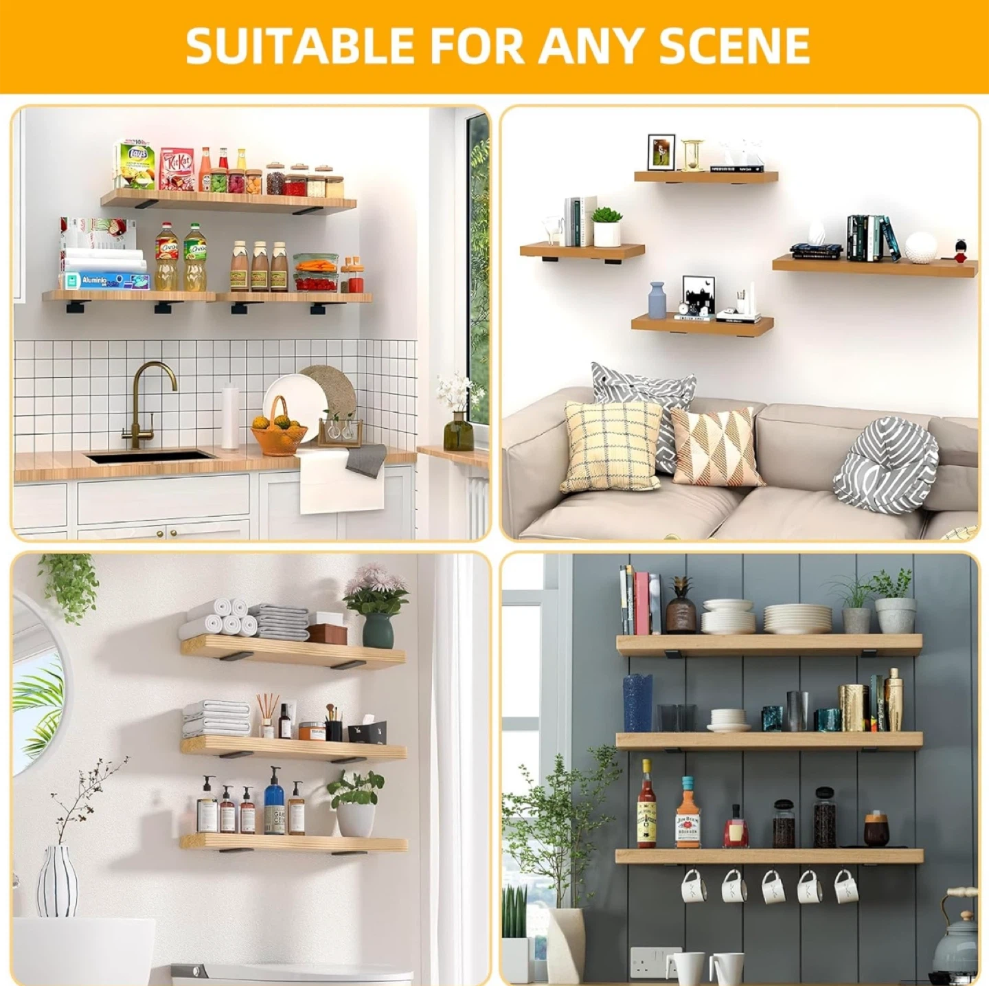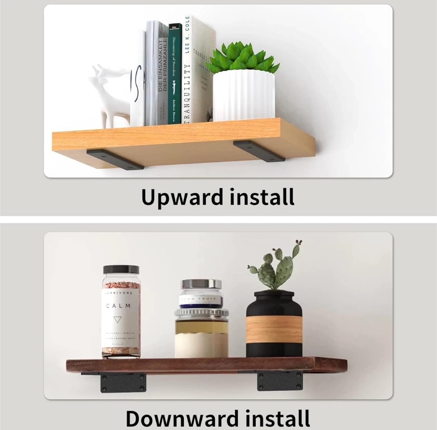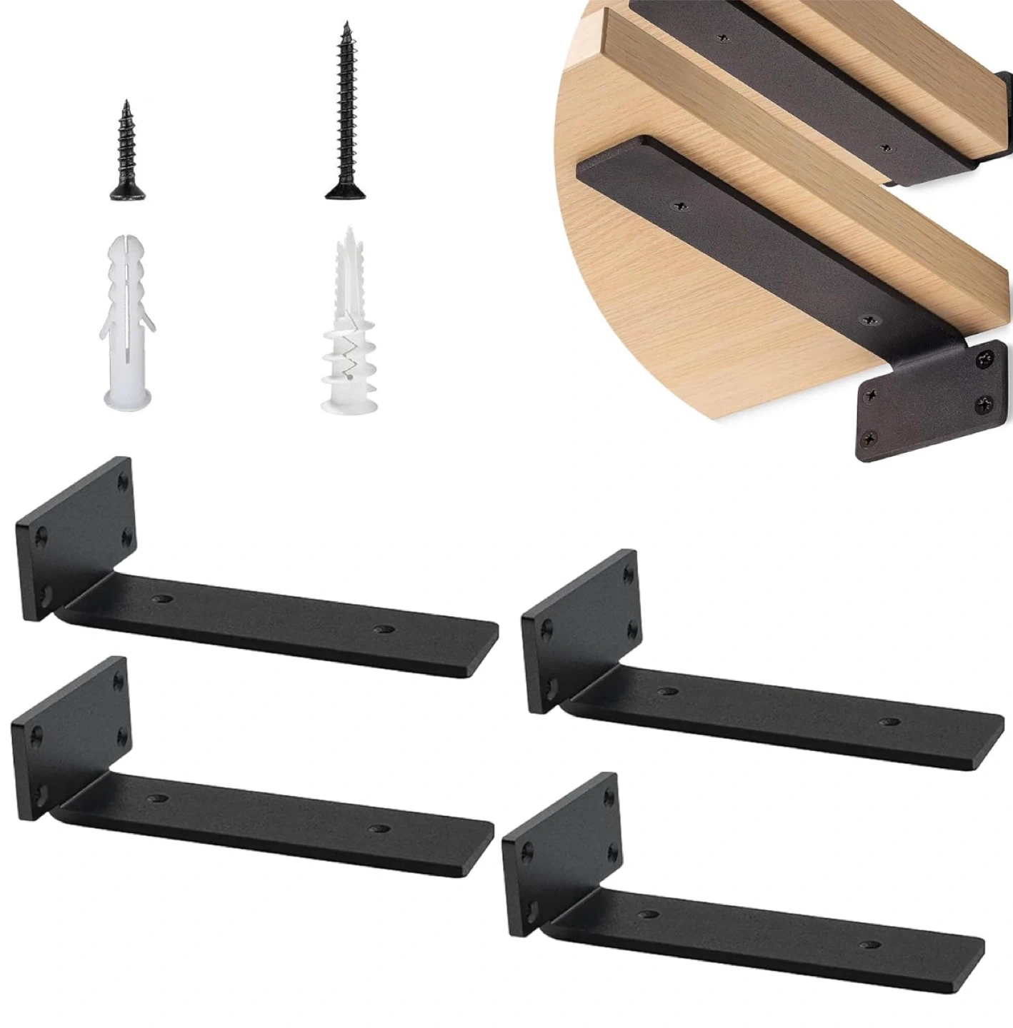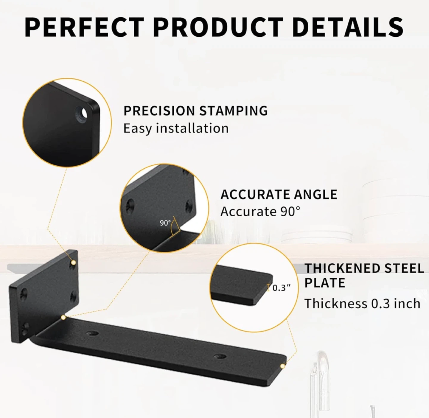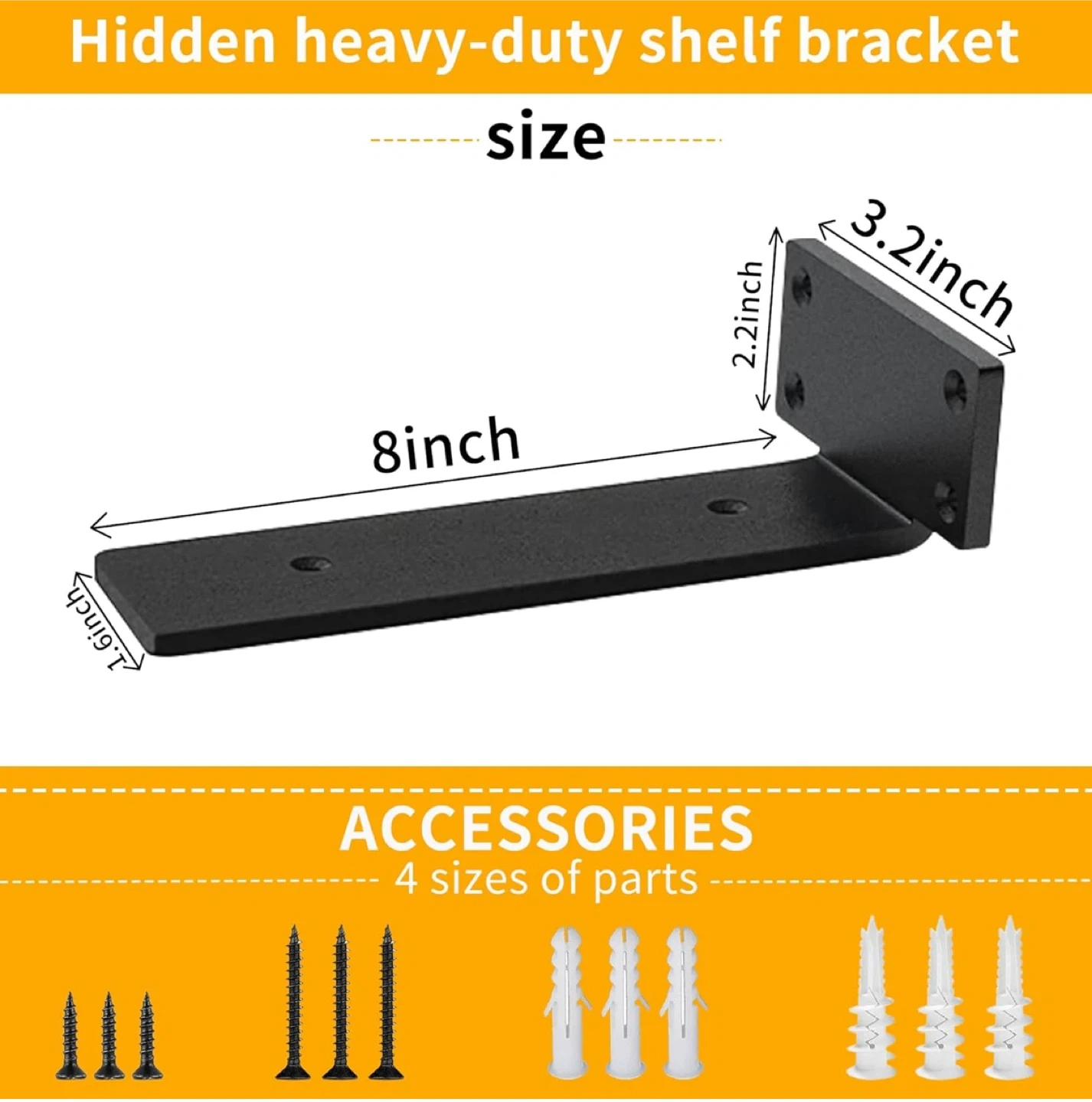 JILANLO Floating Shelf Brackets,1/5 Incn Thick Hidden Heavy Duty Industrial Bracket,Premium Solid Steel L Shelf Bracket,Black Rustic Wall Mounted Brackets for Shelves DIY (8 inch, Count, 6)