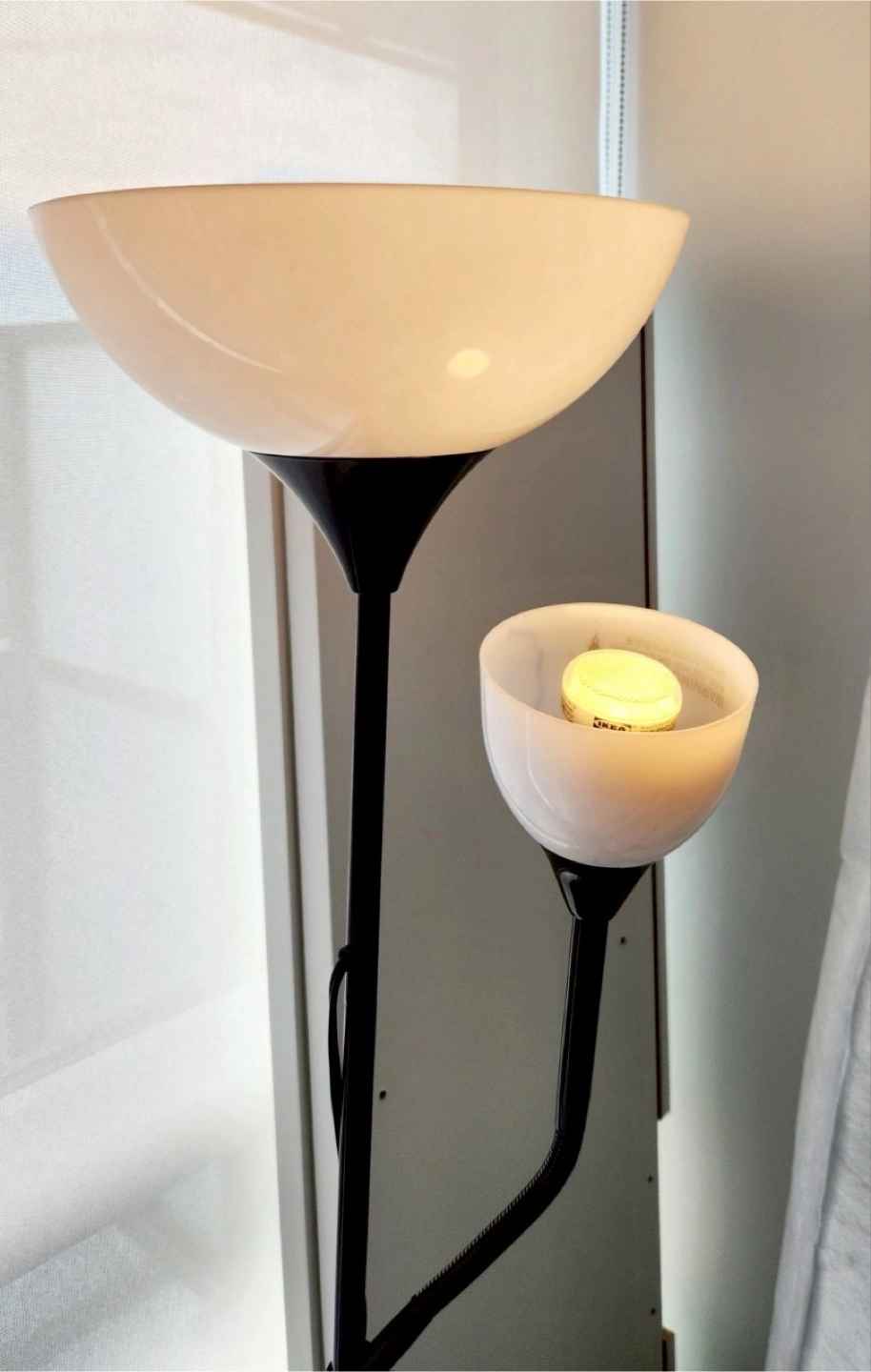 Selling floor lamp in black! It's in great condition and provides both ambient and focused lighting. Perfect for any room!