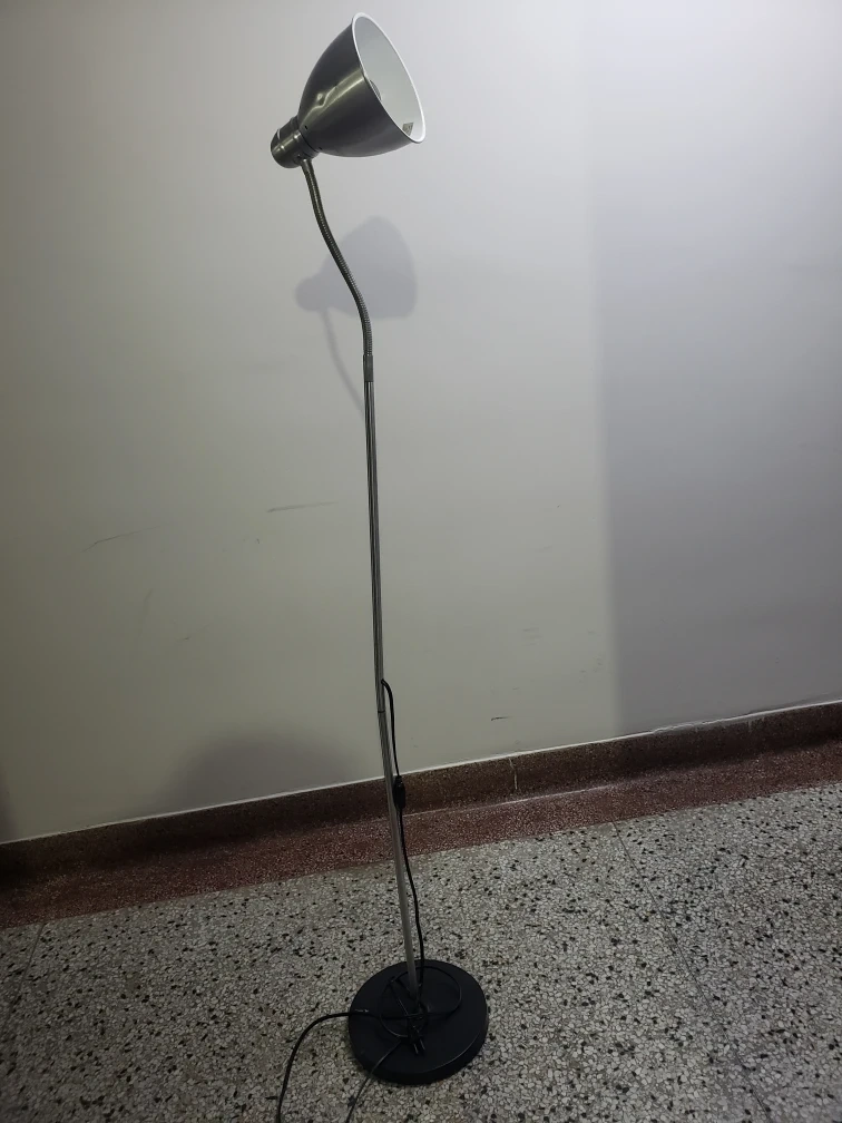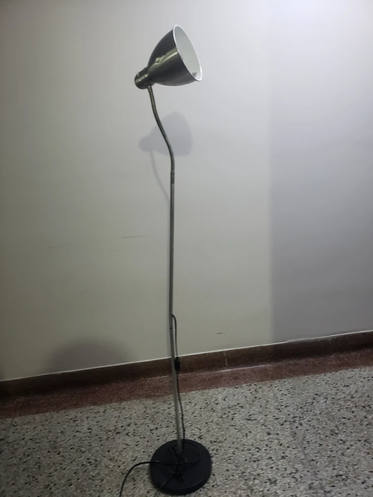 Silver floor lamp with a flexible neck. Great for reading or providing task lighting. both working.