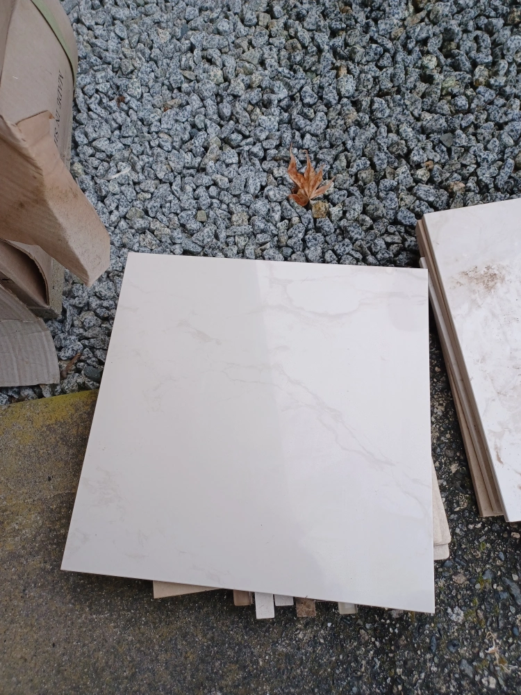 12x12 inch floor tile in white with grey veins. 22 tiles available.Total 22 sqft. $1 per sqft
