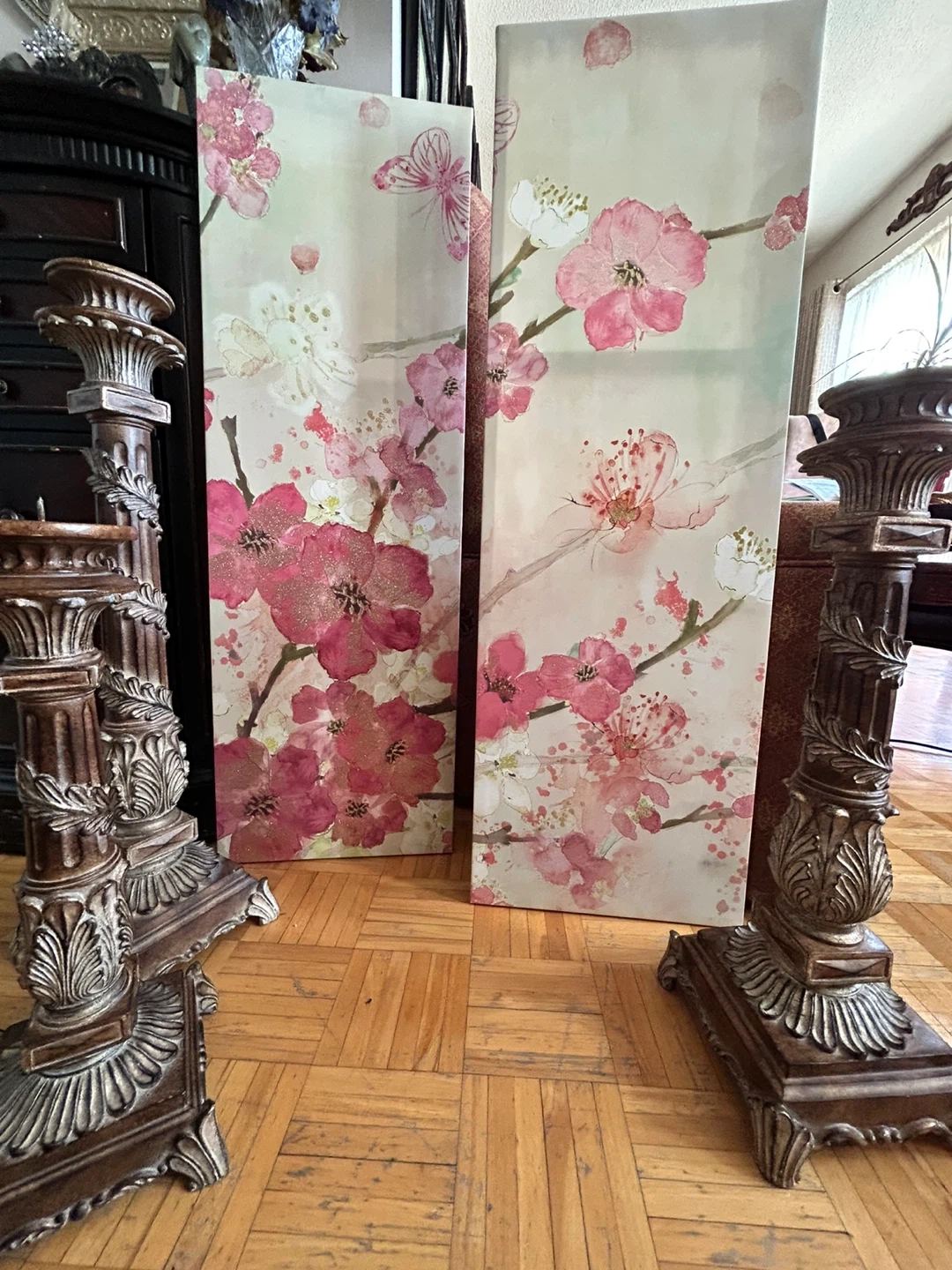 Selling a set of two beautiful floral canvas wall art pieces! They feature a lovely pink cherry blossom design. Perfect for adding a touch of spring to your home decor