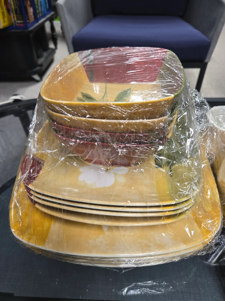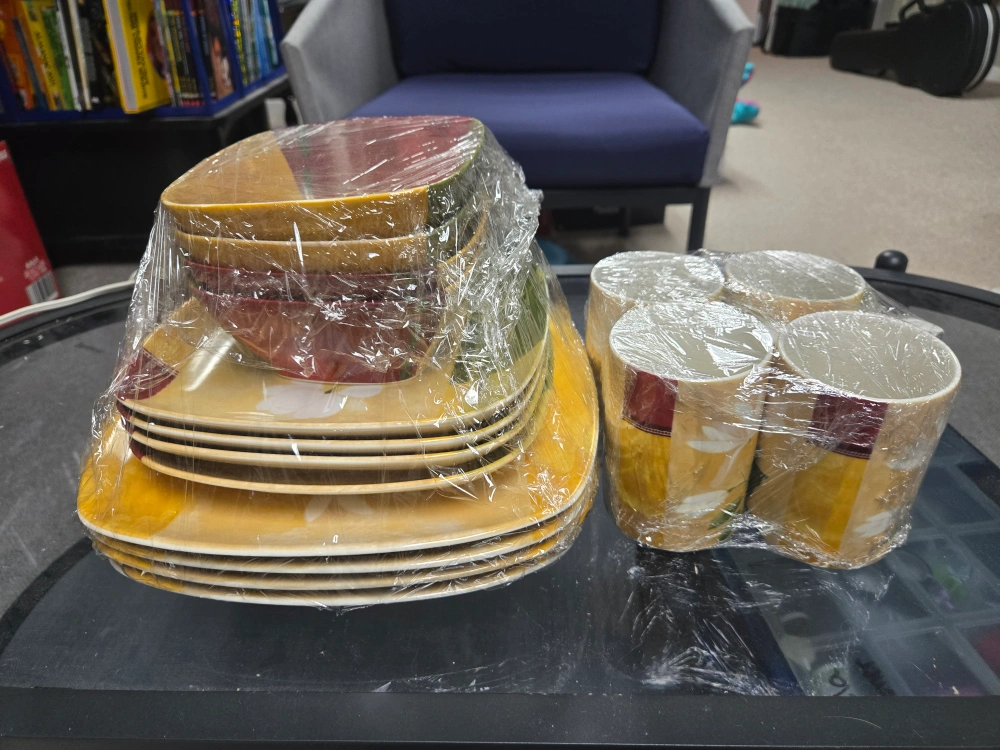 Selling a China dinnerware set. Includes plates and mugs with a lovely floral design. Perfect for adding a touch of spring to your table setting. It is dishwasher safe and barely been used.