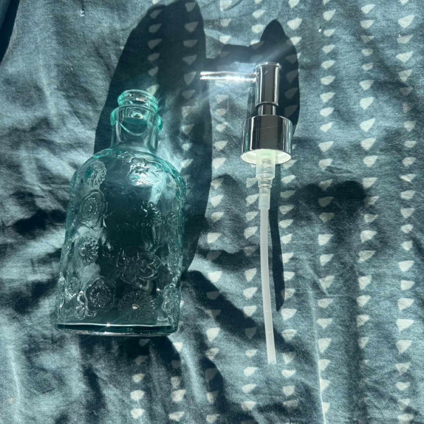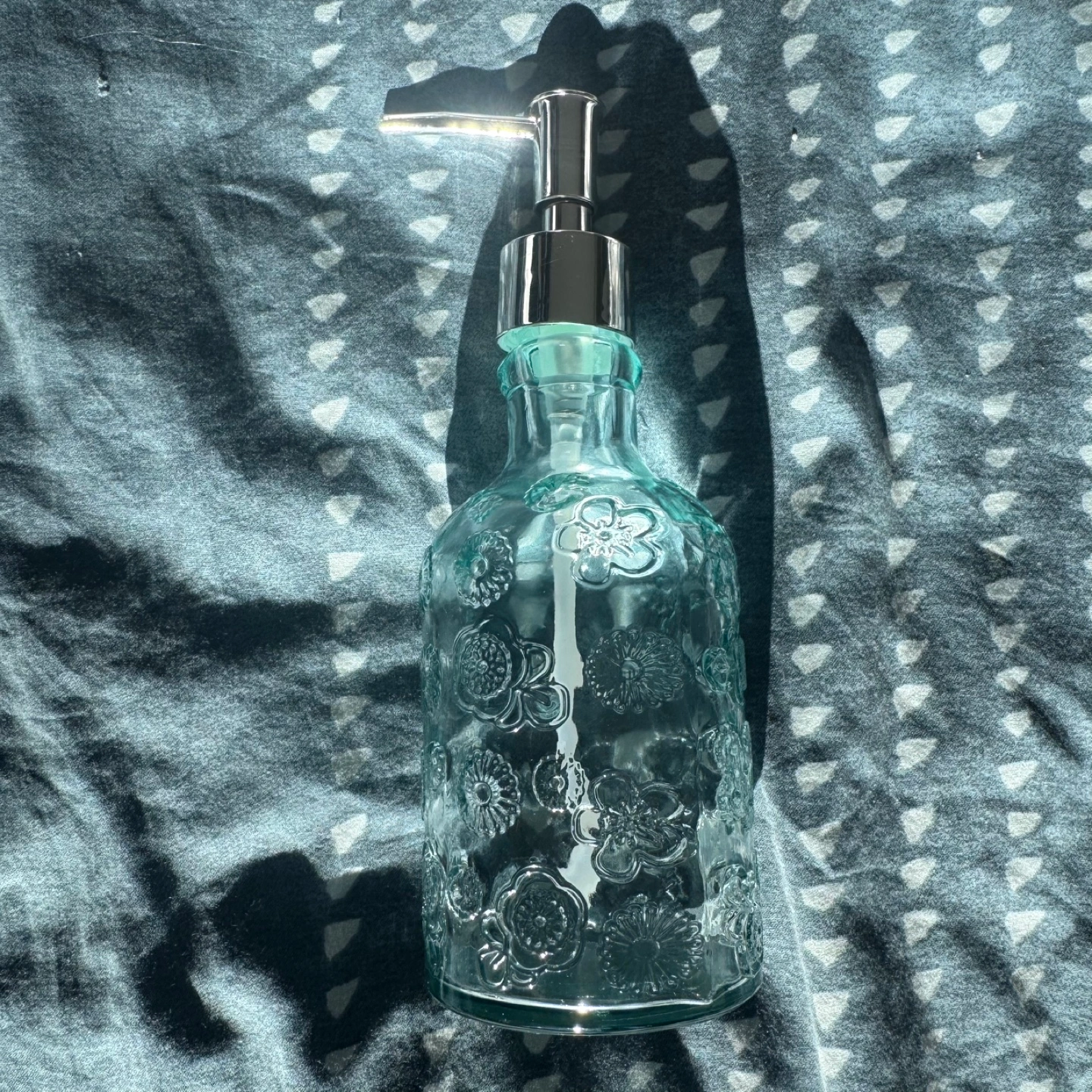 Selling a lovely floral glass soap dispenser! It's in great condition and would add a touch of charm to any bathroom or kitchen sink. 10 $ OBO