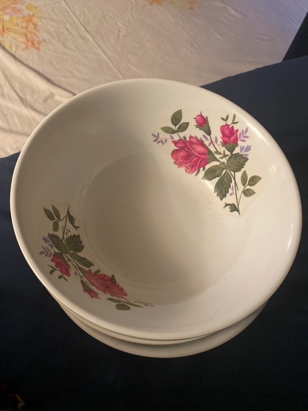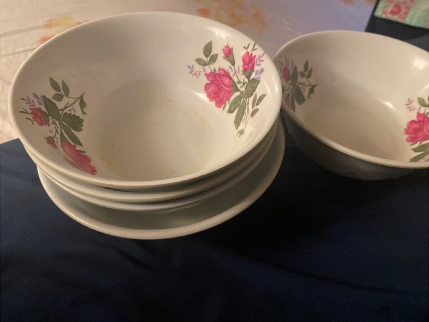 Selling a set of 5 bowls with a lovely floral pattern. They're in great condition and ready for a new home! Perfect for everyday use or special occasions