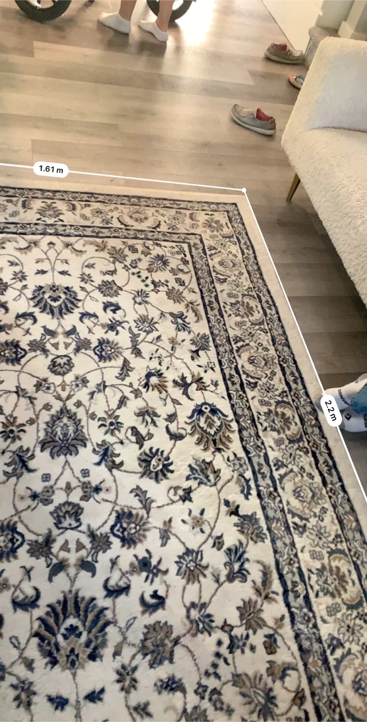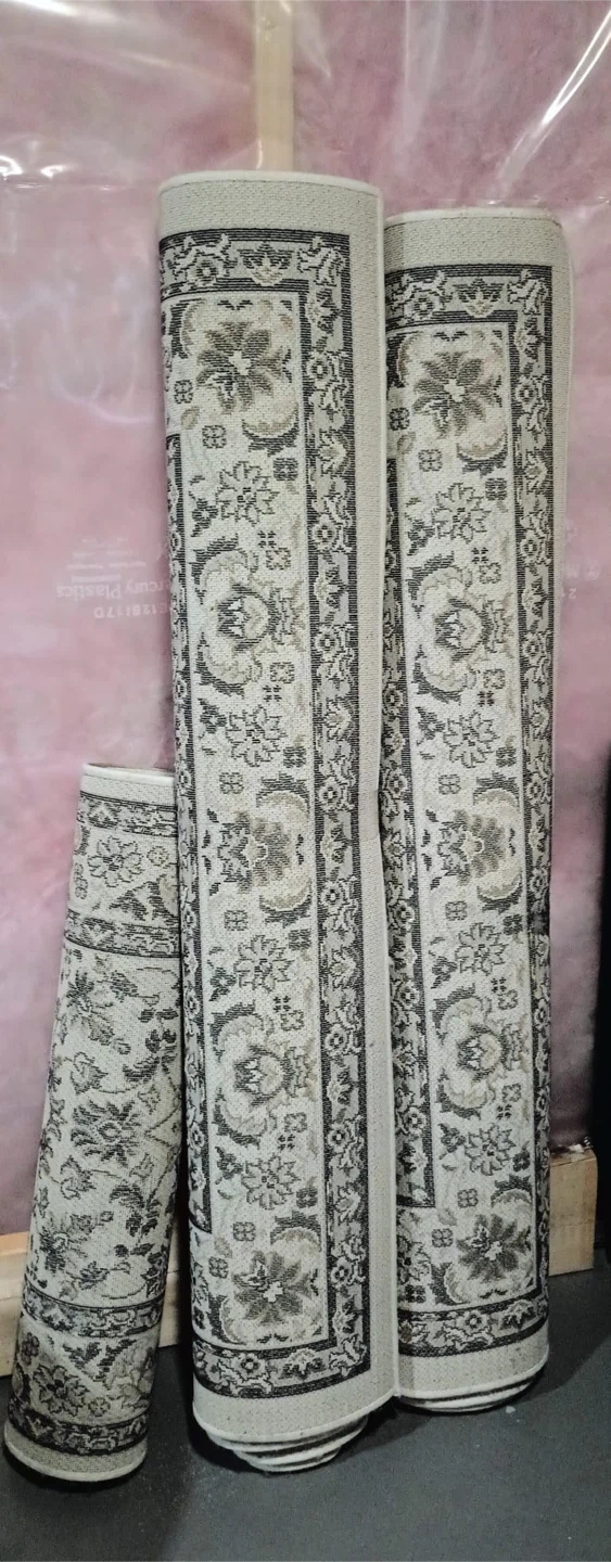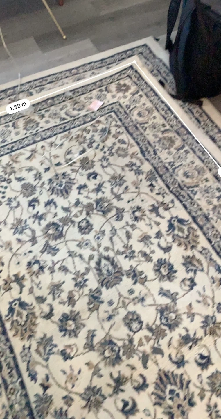 Here's a rug with a lovely floral pattern. It measures approximately 1.32m x 1.88m and 1.61m x 2.2m. It would look great in any room!