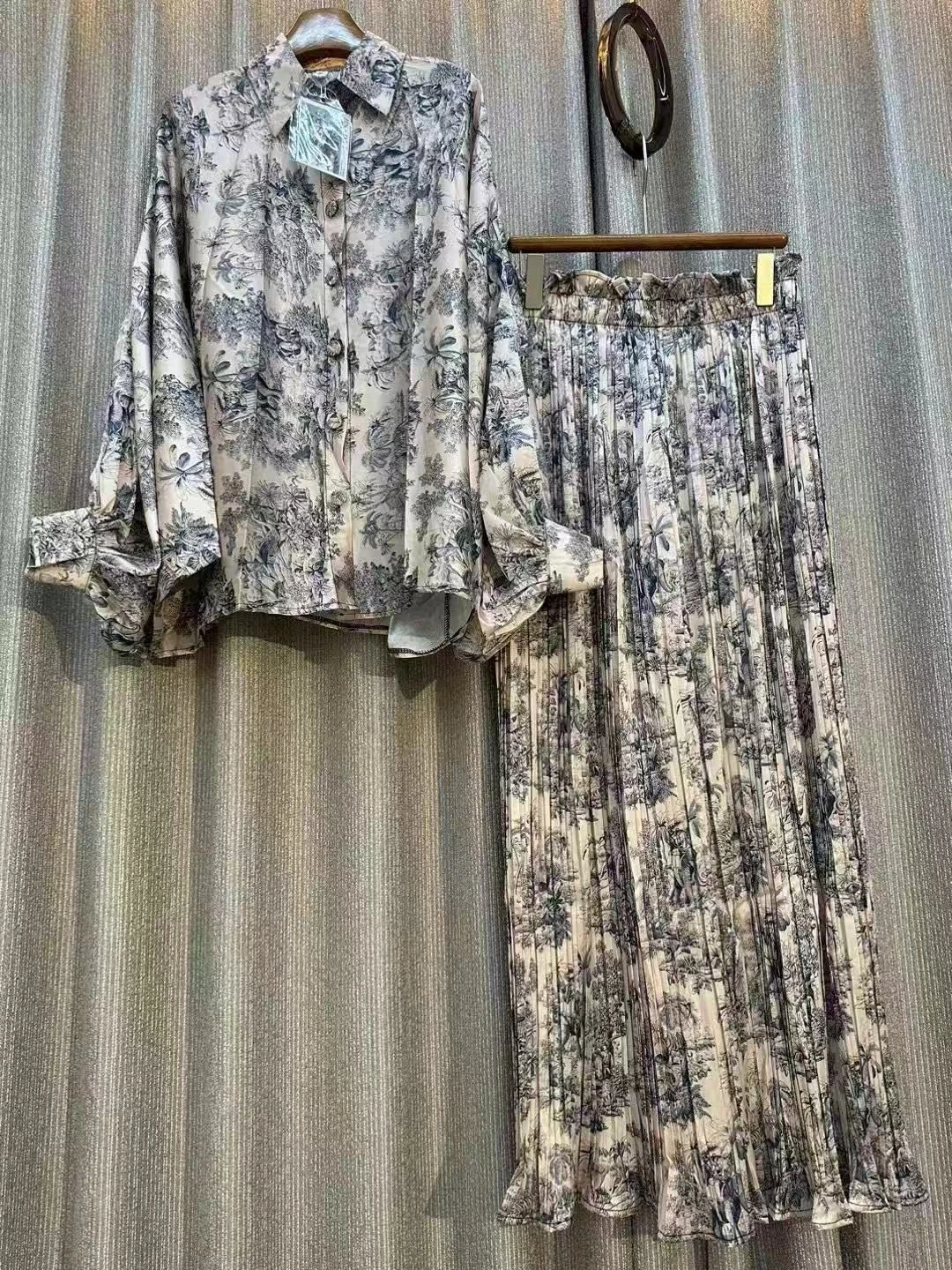 Selling a beautiful floral print two-piece set! The set includes a long-sleeved button-up shirt and a matching pleated plazo Perfect for a stylish and coordinated look