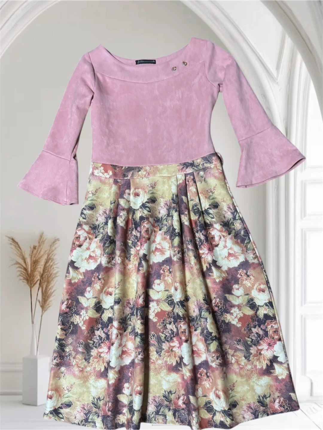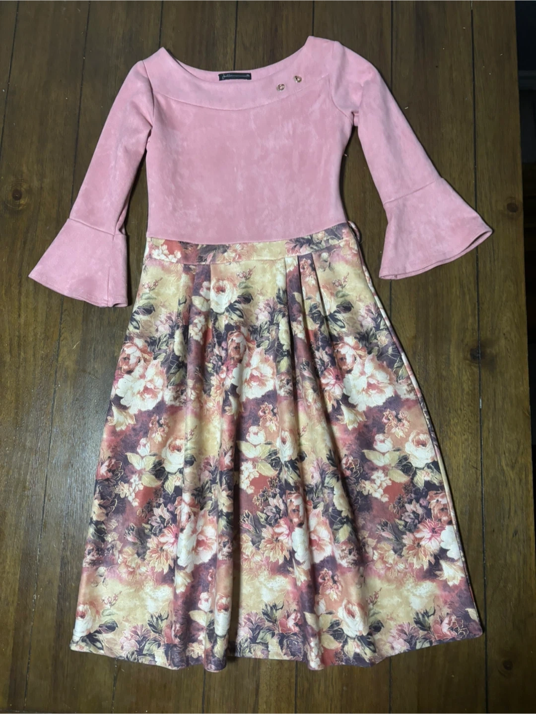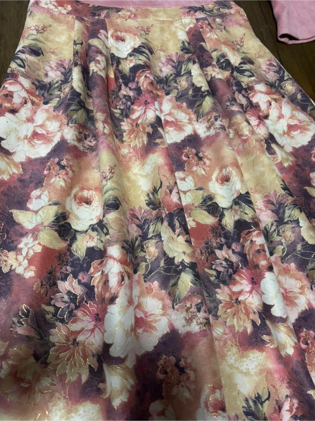 Selling a skirt with a lovely floral pattern and a pleated design. The skirt has a mix of colours including pink, yellow, and purple hues, making it a versatile addition to any wardrobe