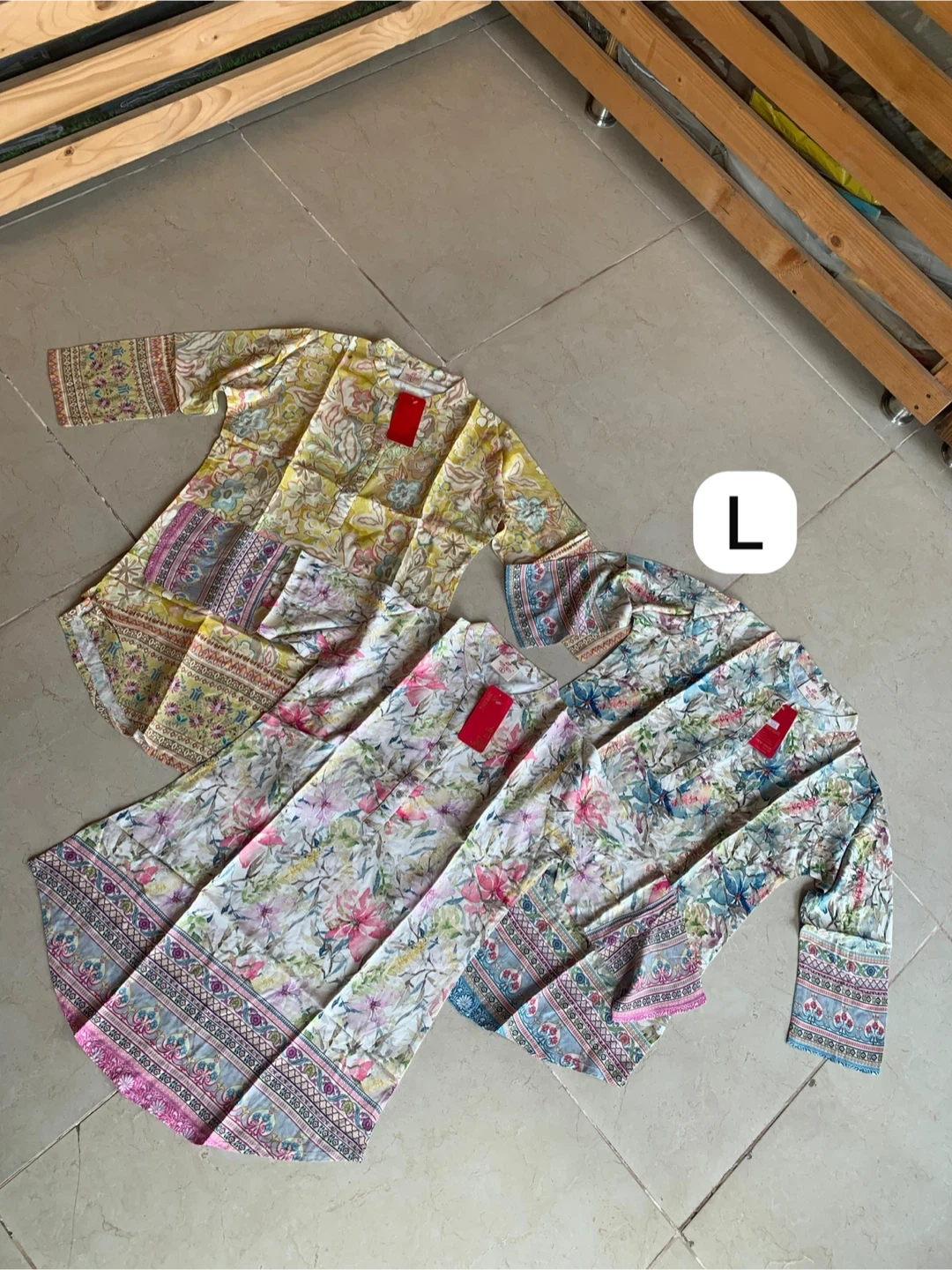 Selling these lovely floral print dresses in size L. They feature a beautiful pattern and would be a great addition to your wardrobe! They appear to be in great condition.