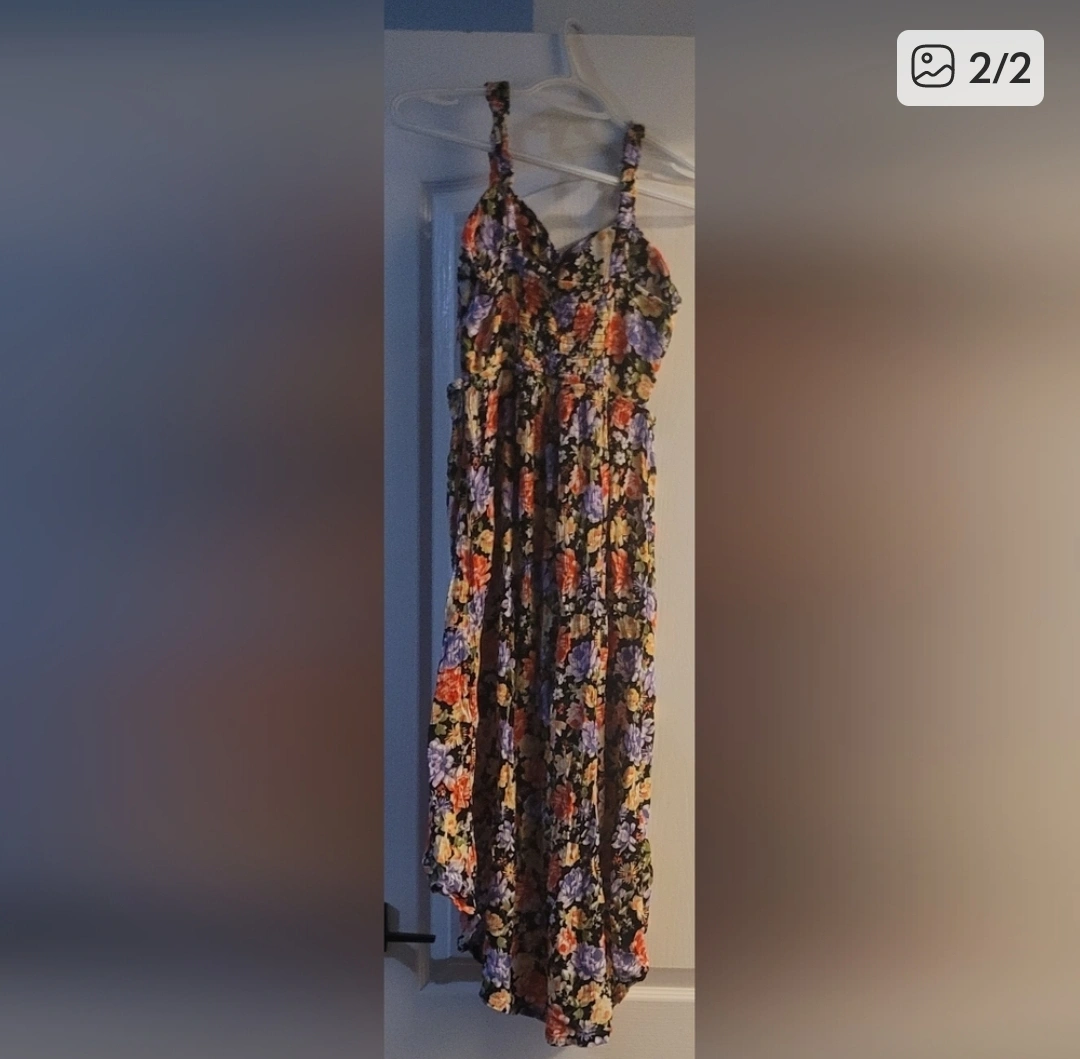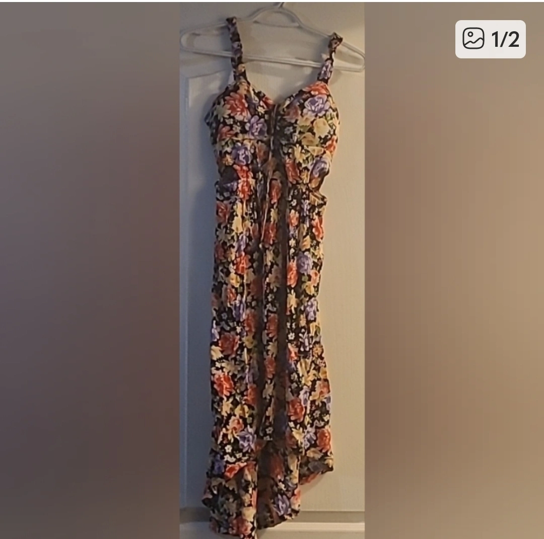 Selling a cute floral print hi-lo dress! It's a size small and features a vibrant floral pattern. Perfect for summer or a special occasion. In great condition!