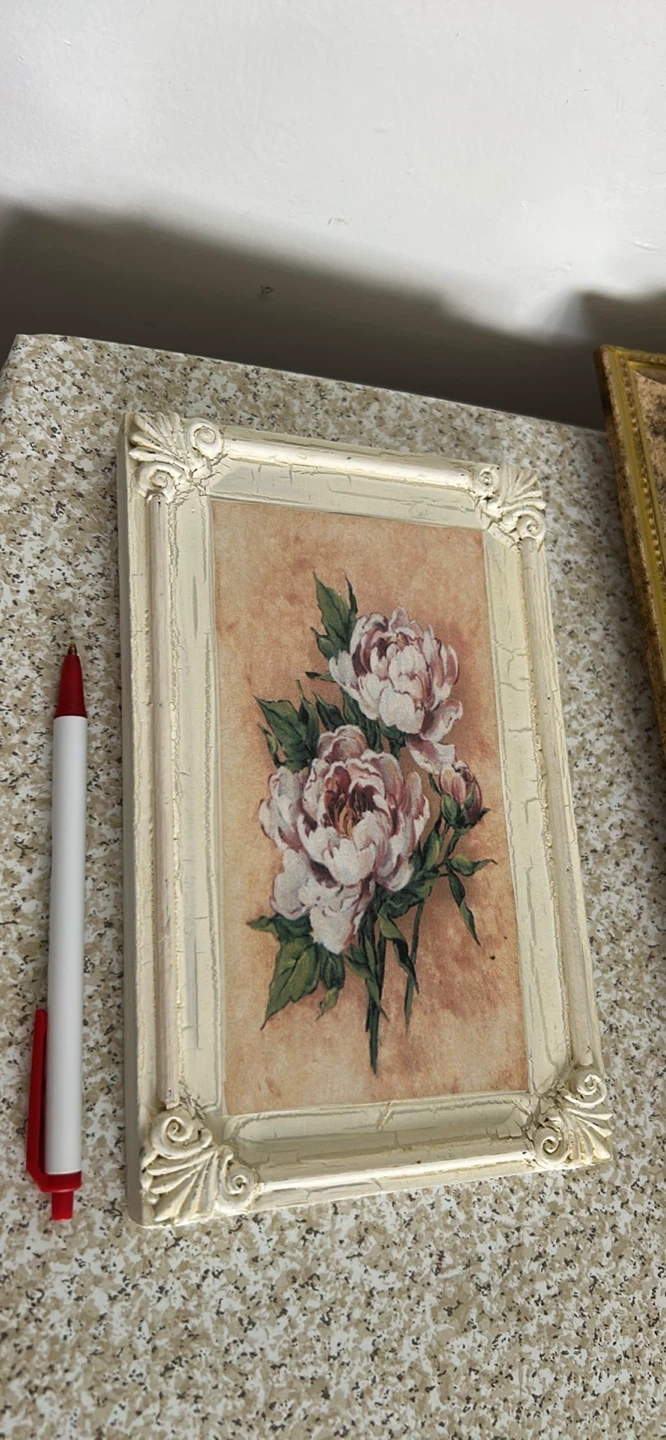 This is a lovely floral print in an ornate frame. It would look great in any room of the house! Perfect for adding a touch of vintage charm to your home decor