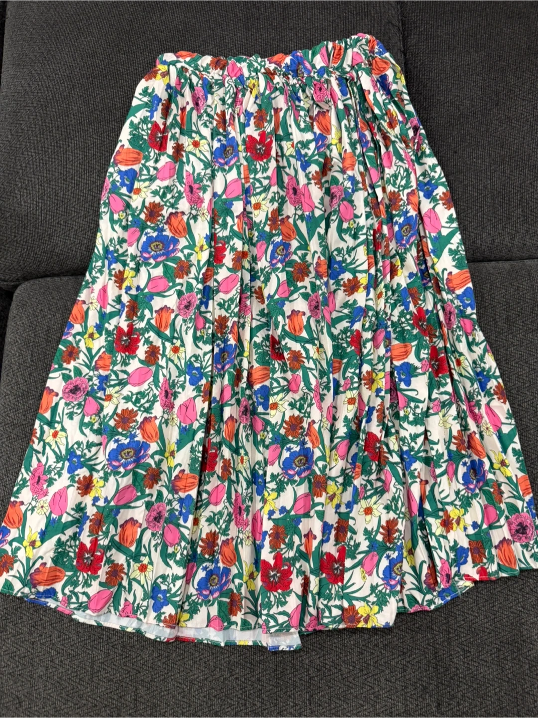Selling a lovely floral print maxi skirt. It's perfect for adding a pop of colour to your wardrobe. The skirt features a vibrant floral pattern with a comfortable elastic waistband. It’s in great condition and has a flowing, flattering fit