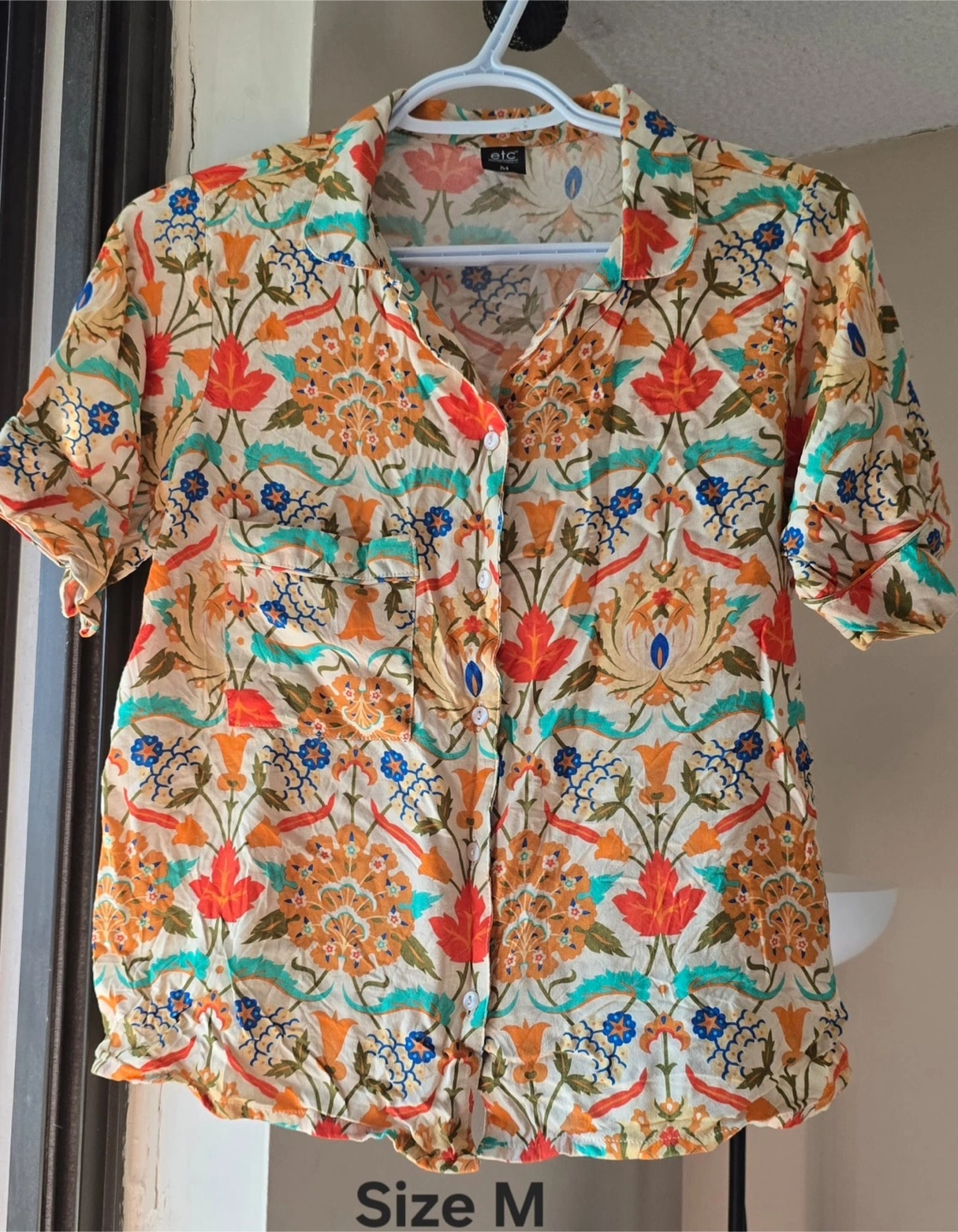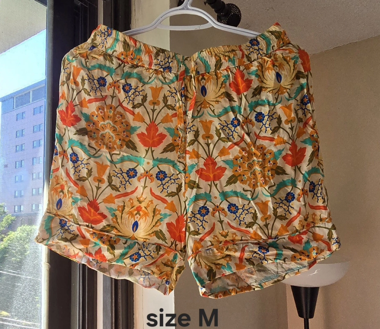 Selling a cute matching top and shorts set! The set features a vibrant floral print in orange, blue, and green tones. Both pieces are a size M and it’s brand new. Perfect for a casual summer look!