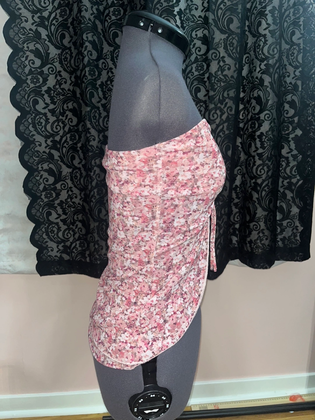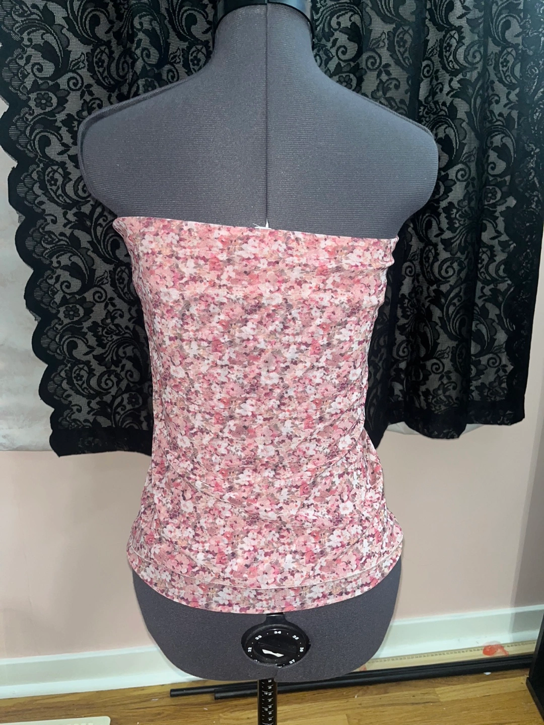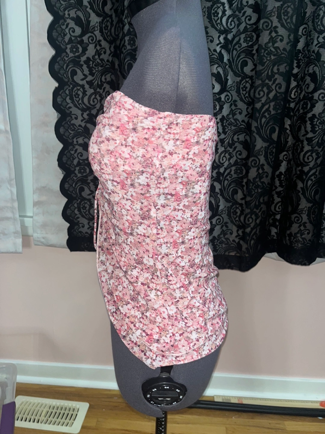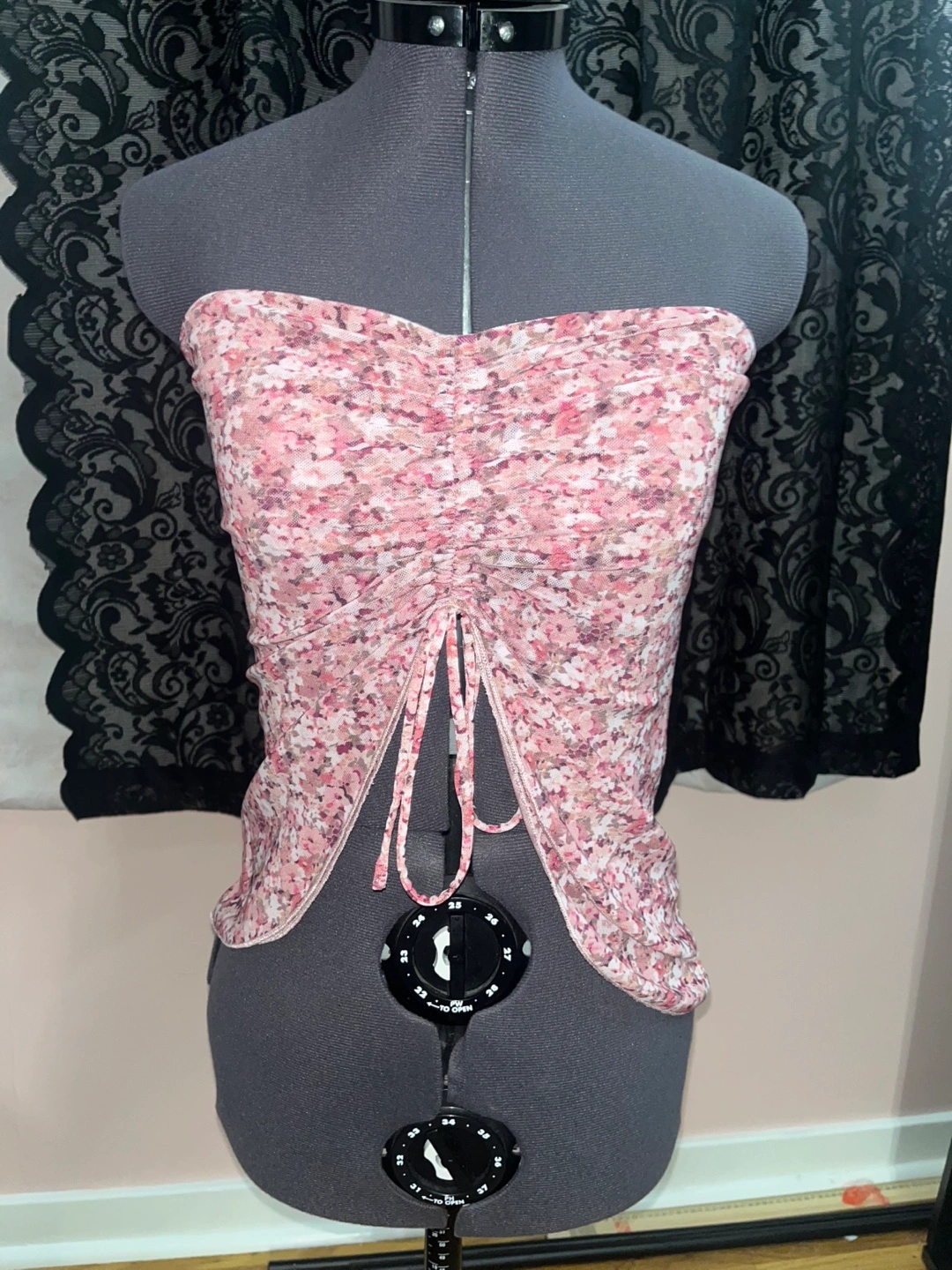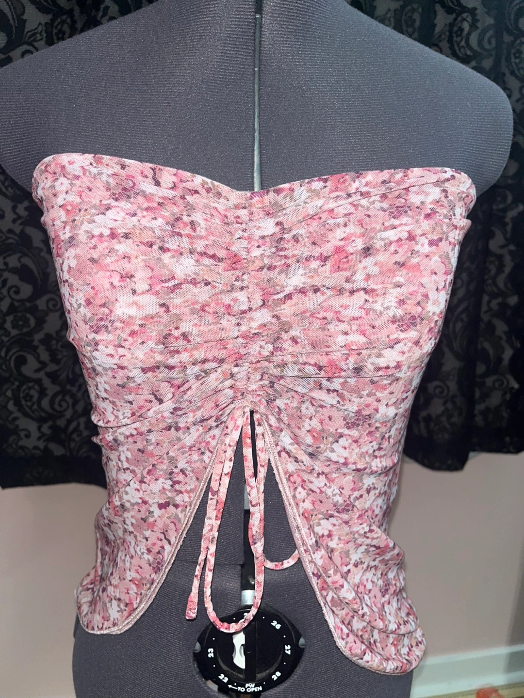 A cute floral print tube top, perfect for summer! The material is soft and comfortable, and the drawstring detail adds a nice touch. It's in great condition and ready for a new home