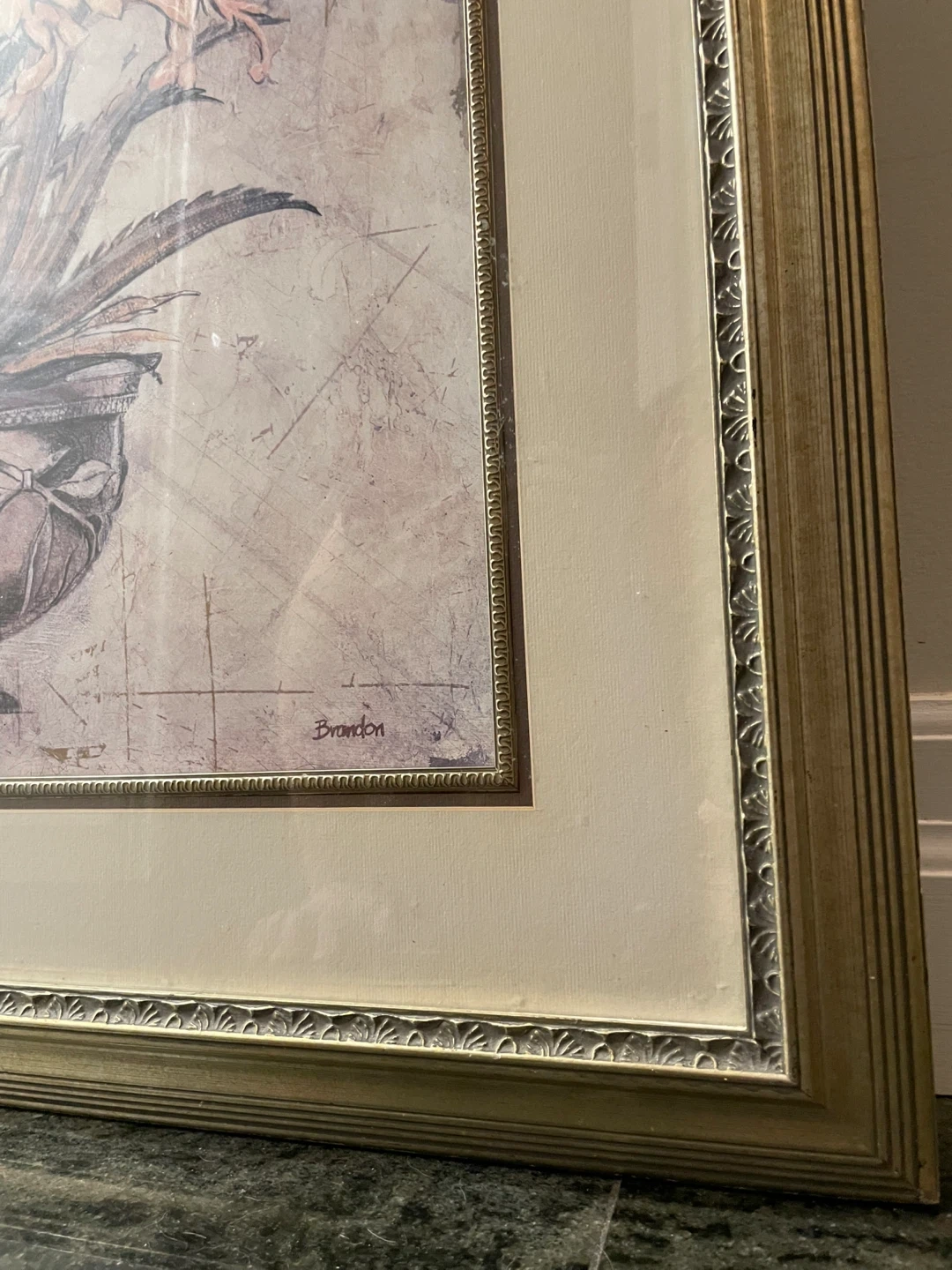Beautiful framed print - Guardian of the Forest II by Richard Brandon Cash and pickup only! Bloor and Ossington This is a framed floral print wall art piece. It features a decorative gold-tone frame and a print of flowers in a vase. It's a nice piece to add some character to your home decor