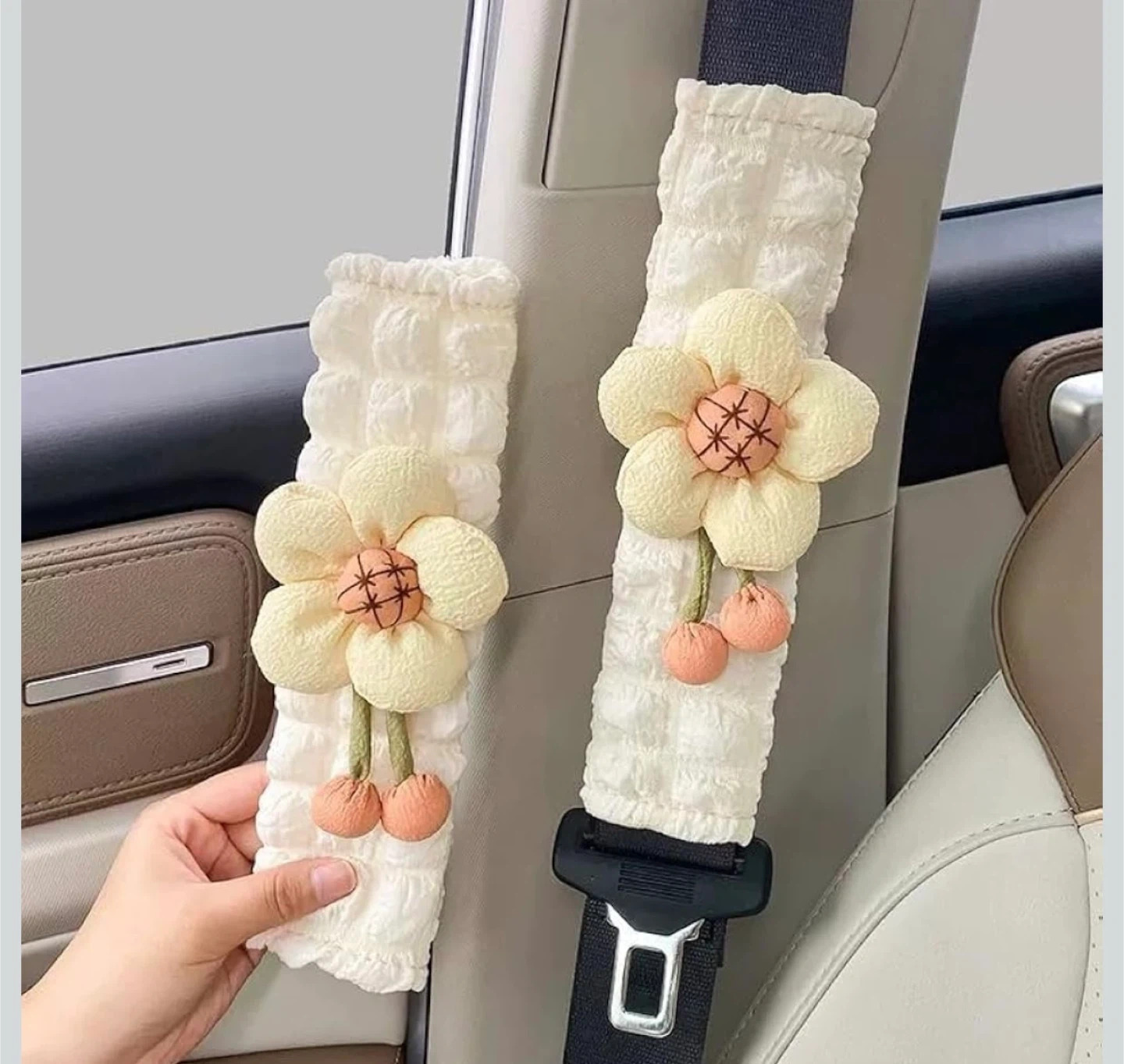 Add a touch of whimsy to your car with these adorable flower car seat belt covers! They're made of a soft, textured material and feature a cute flower design. These covers not only look great but also provide extra comfort while driving. Perfect for adding a bit of charm to your daily commute